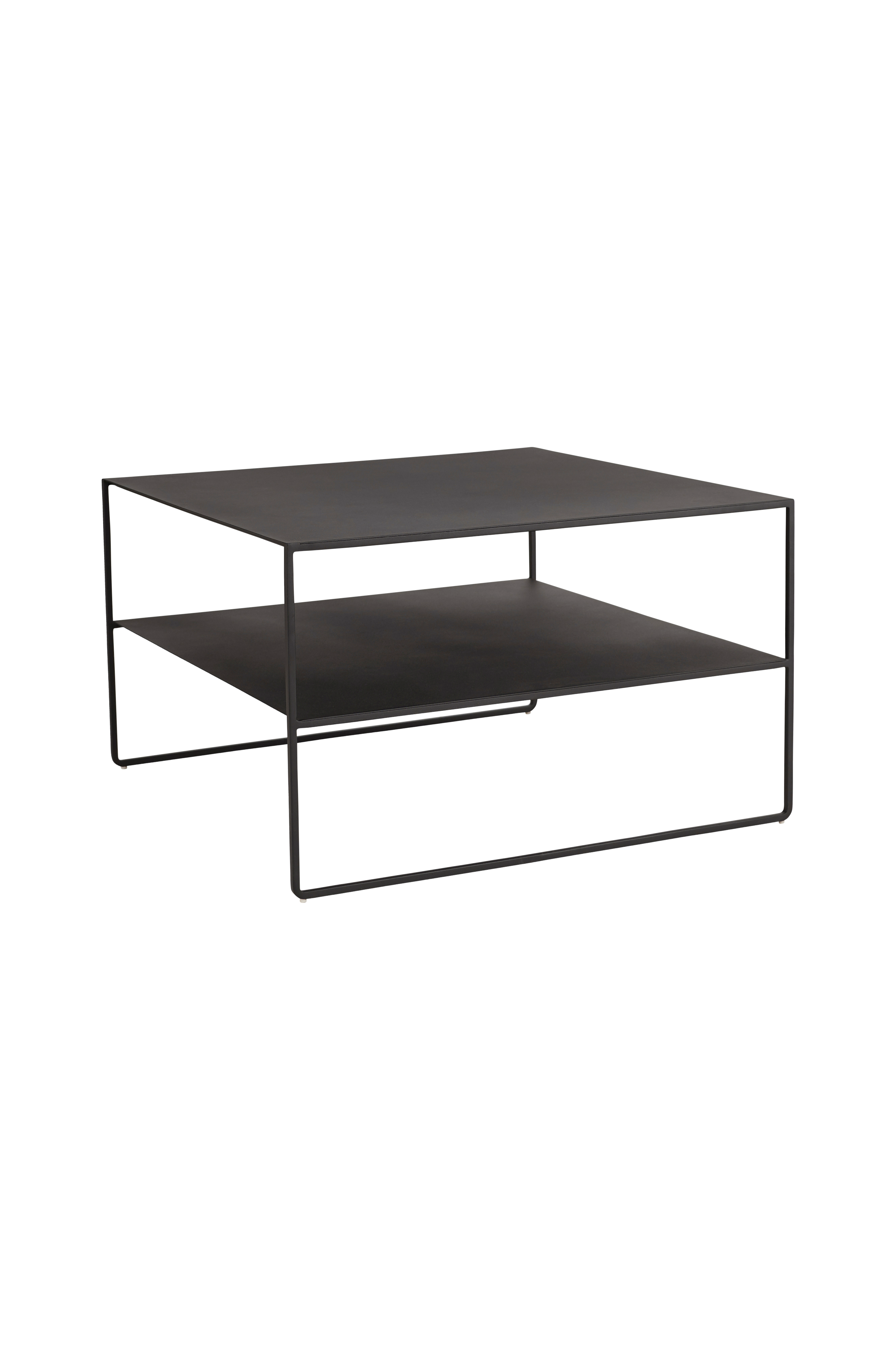 Sofabord av pulverlakkert metall med sandaktig finish og lett, fin tekstur. En hylle. Høyde mellom hylleplan og bordplate 20 cm. Frihøyde under møbelet 23 cm. Leveres montert.