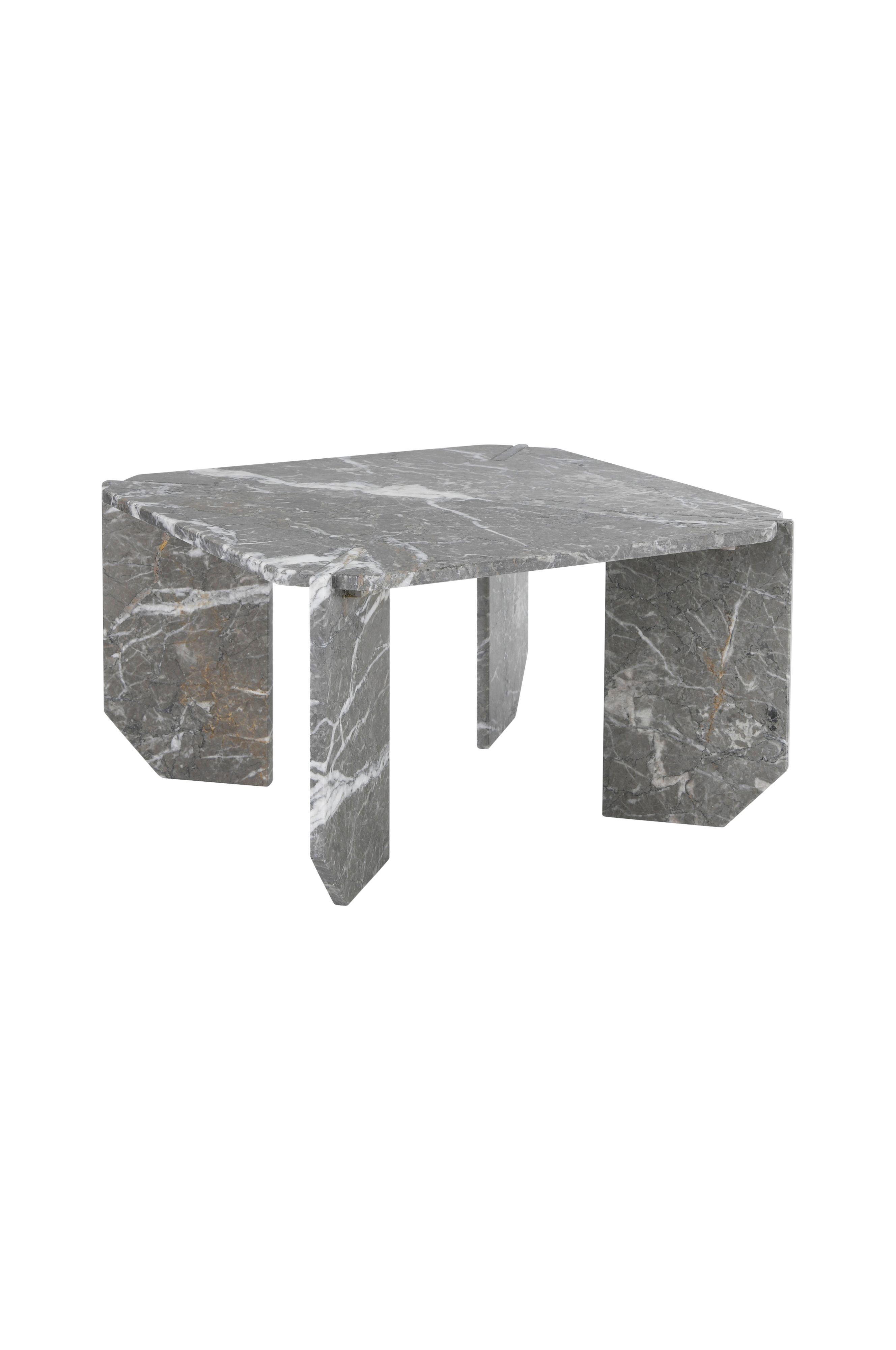 Sofabord i grå marmor med naturlig, uregelmessig tekstur.