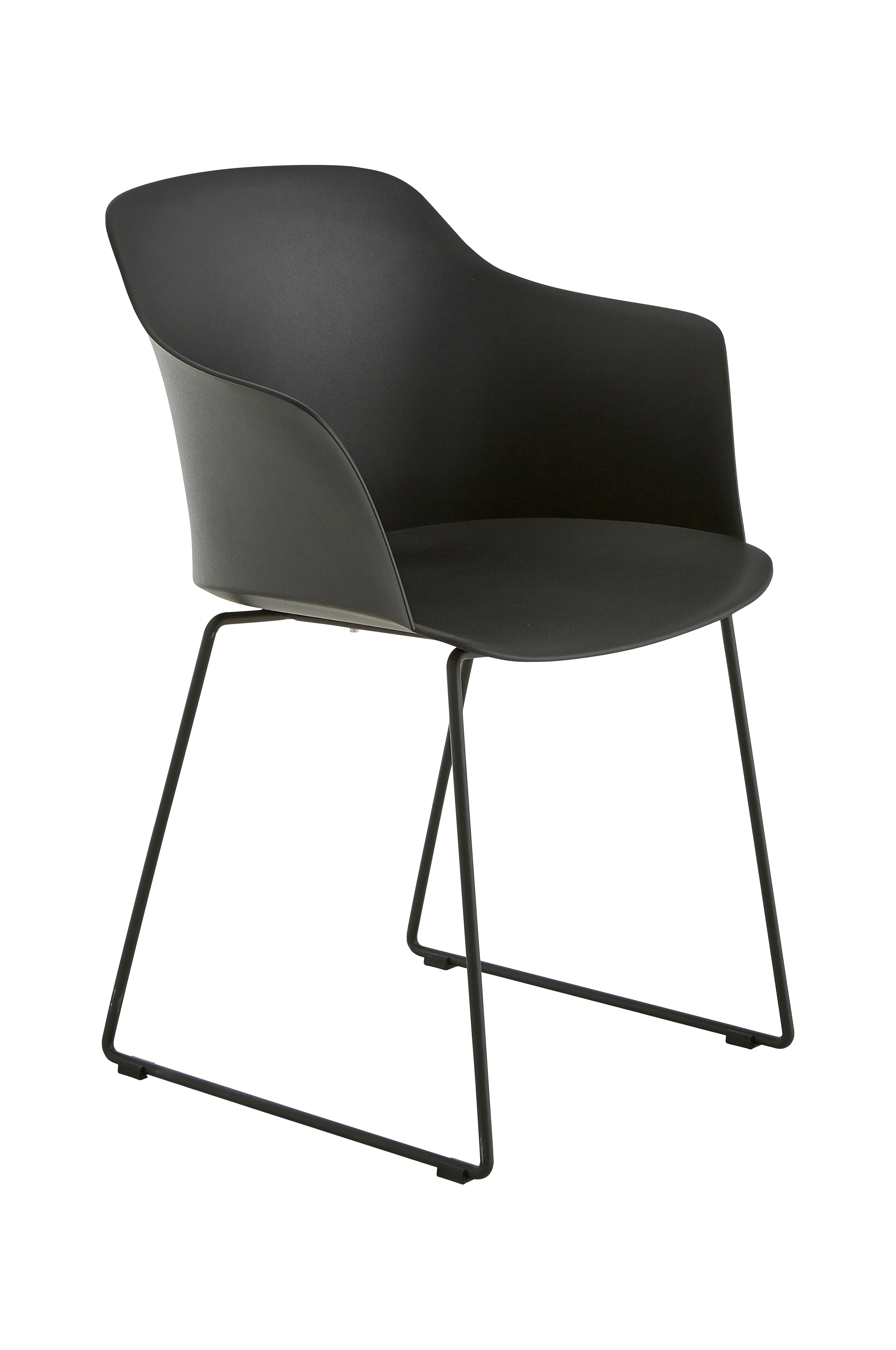 Stol av formstøpt plast med UV-beskyttelse. Stamme i pulverlakkert metall. Kan tørkes av. Høyde 82 cm, bredde 59 cm, dybde 49 cm. Sittedybde 45 cm, sittehøyde 45 cm. Høyde fra gulv til armlene 68 cm. Maks. vektbelastning 120 kg. Enklere montering.