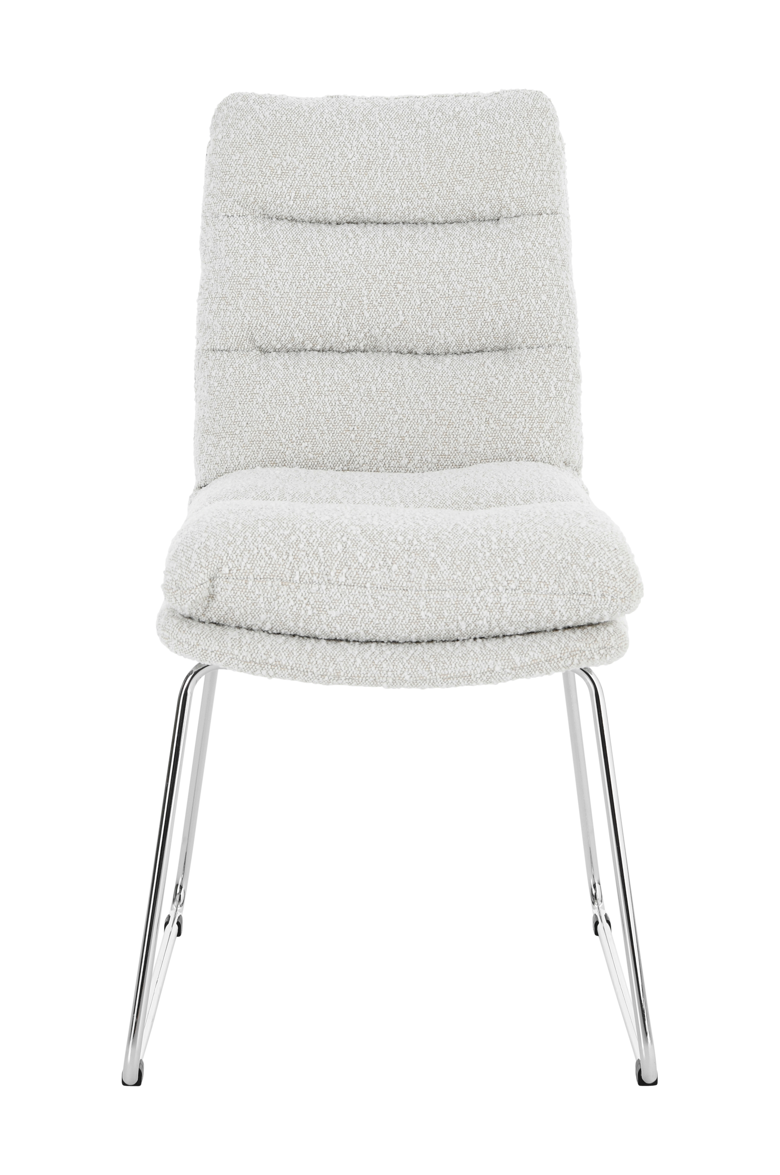 Stol med vattert trekk i boucléstoff. Forkrommede metallben med knotter. Maks. vektbelastning 130 kg. Selges i 2-pakning.
