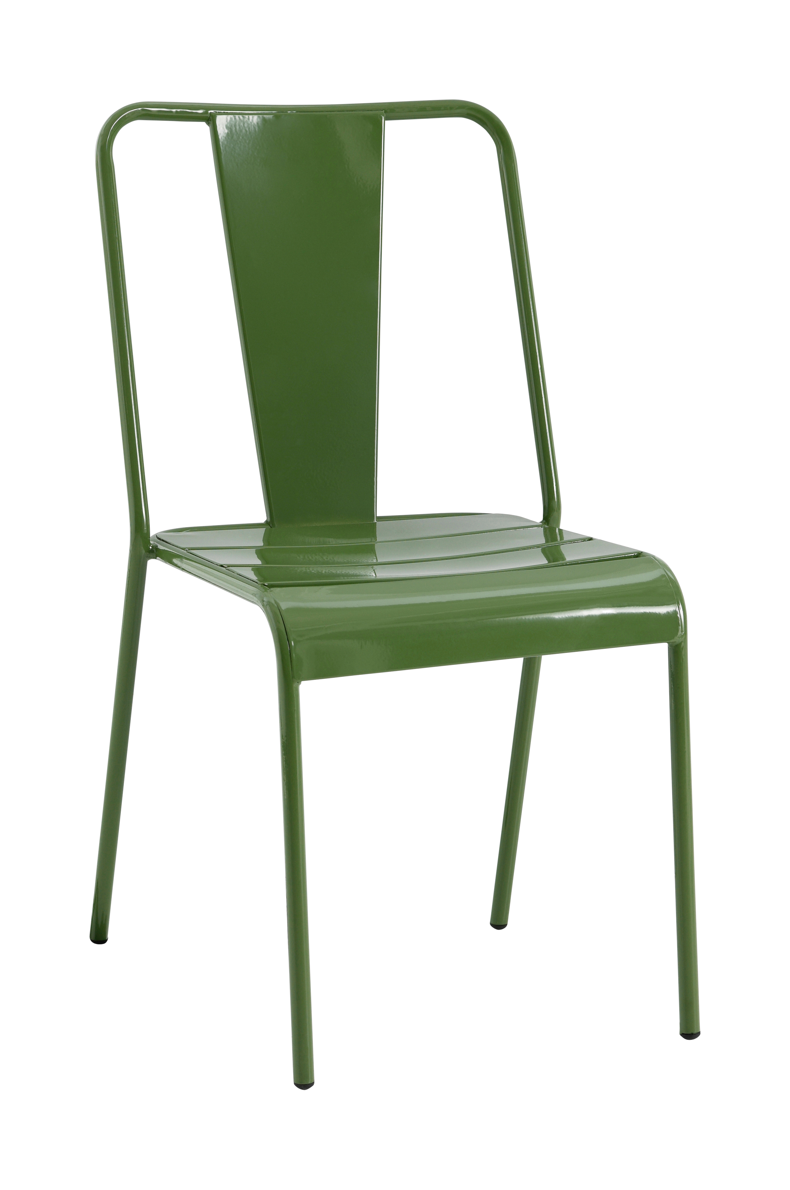 To stoler av pulverlakkert metall med behagelig avrundet forkant. Mål: Bredde 46 cm, høyde 84 cm, dybde 54 cm. Sittehøyde 45 cm, sittedybde 40 cm.