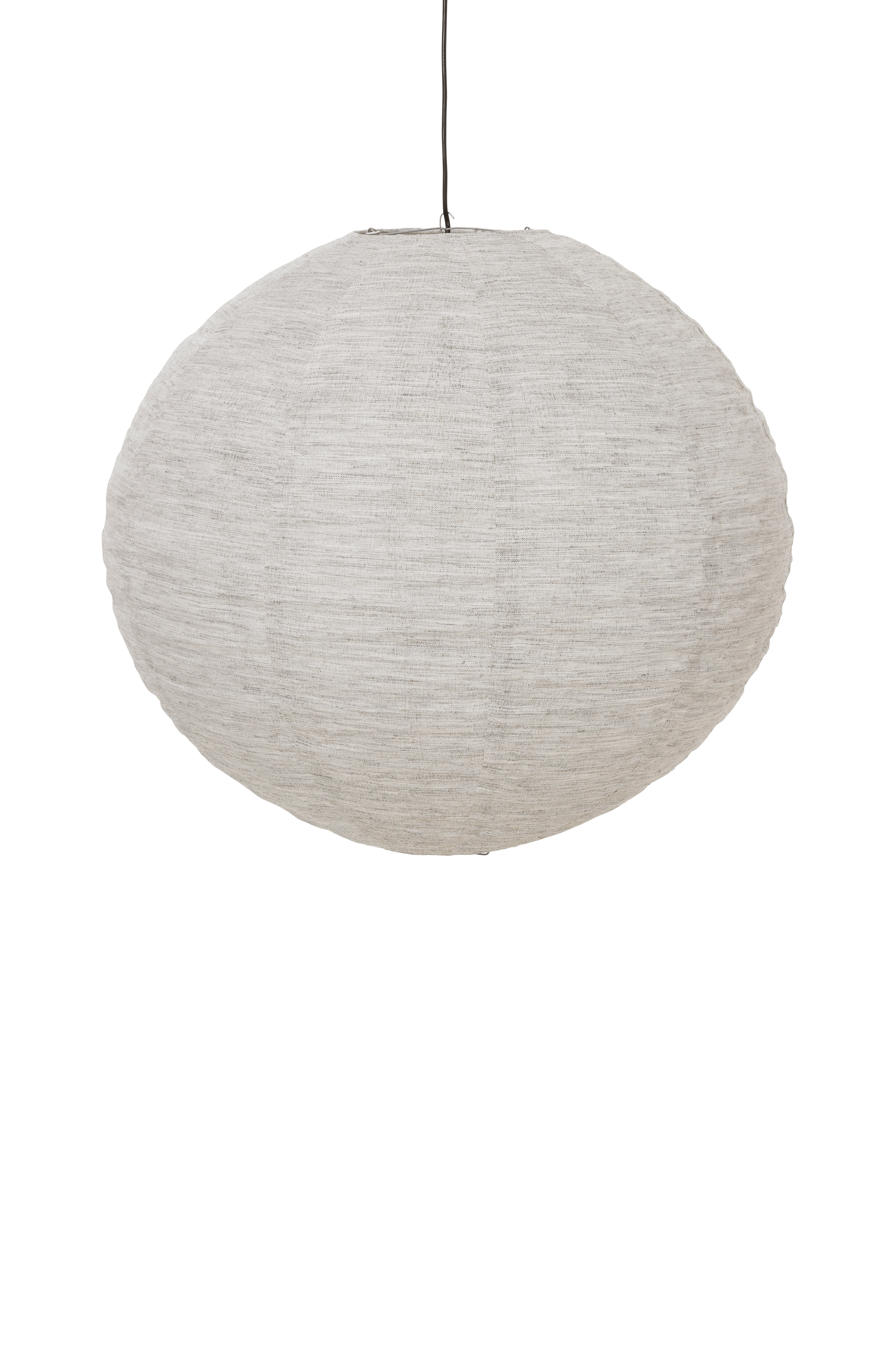 Takskjerm med teksturtekstil og riskonstruksjon som gir et vakker lys. Skjermens mål: Ø 70 cm, høyde 65 cm. Takoppheng og lyspære er ikke inkludert.