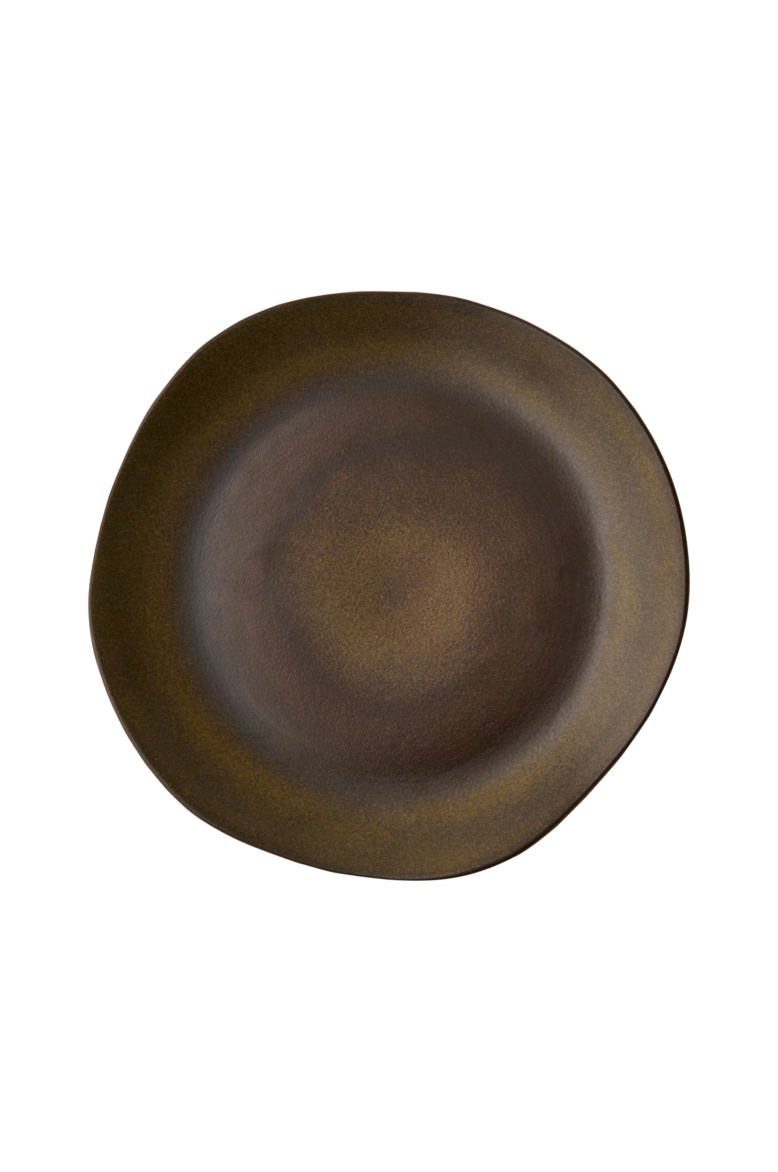 Håndlaget tallerken av porselen med uregelmessig tekstur og uregelmessige kanter. Selges enkeltvis.