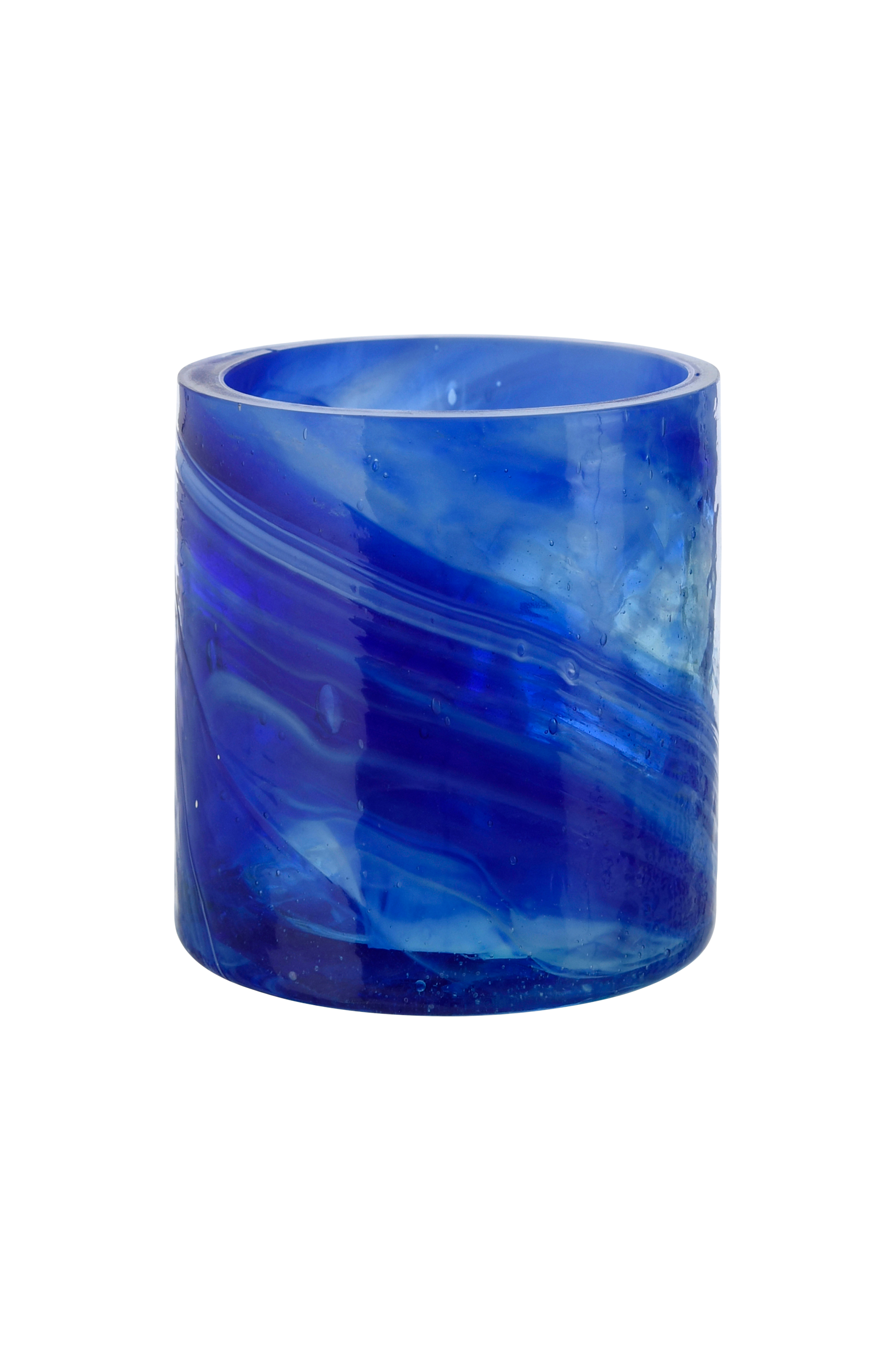 Telysholder i glass. Fargen har vakre skiftninger som skaper et fint uttrykk og et stemningsfullt lys. Teknikken gjør at det forekommer ujevnheter og fargeforskjeller. Det gjør hver telysholder unik.