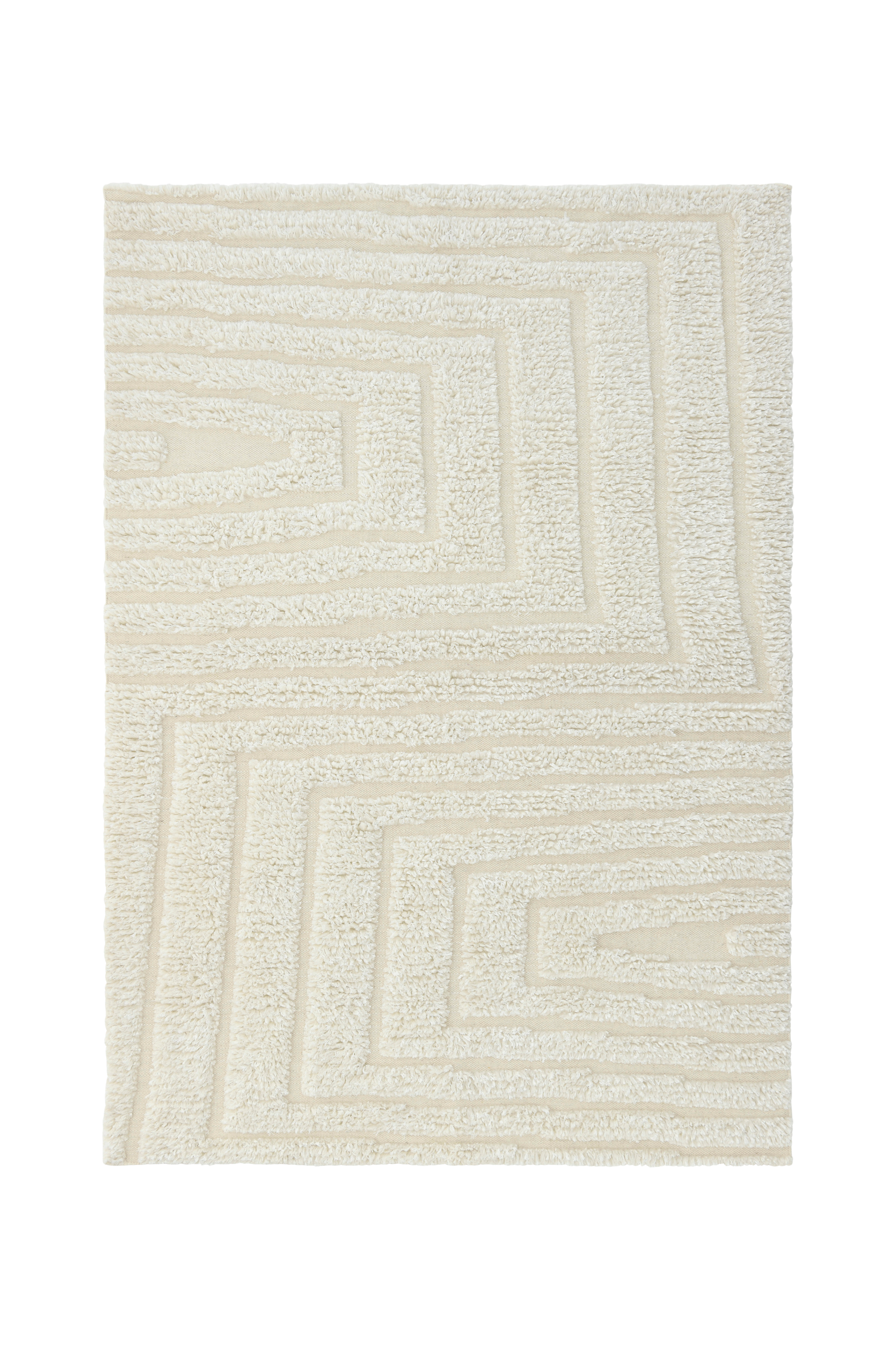 Håndvevd teppe i ull med viskoseblanding i luggen som gir teppet en fin glans. Teppets tykkelse 1,5 cm.