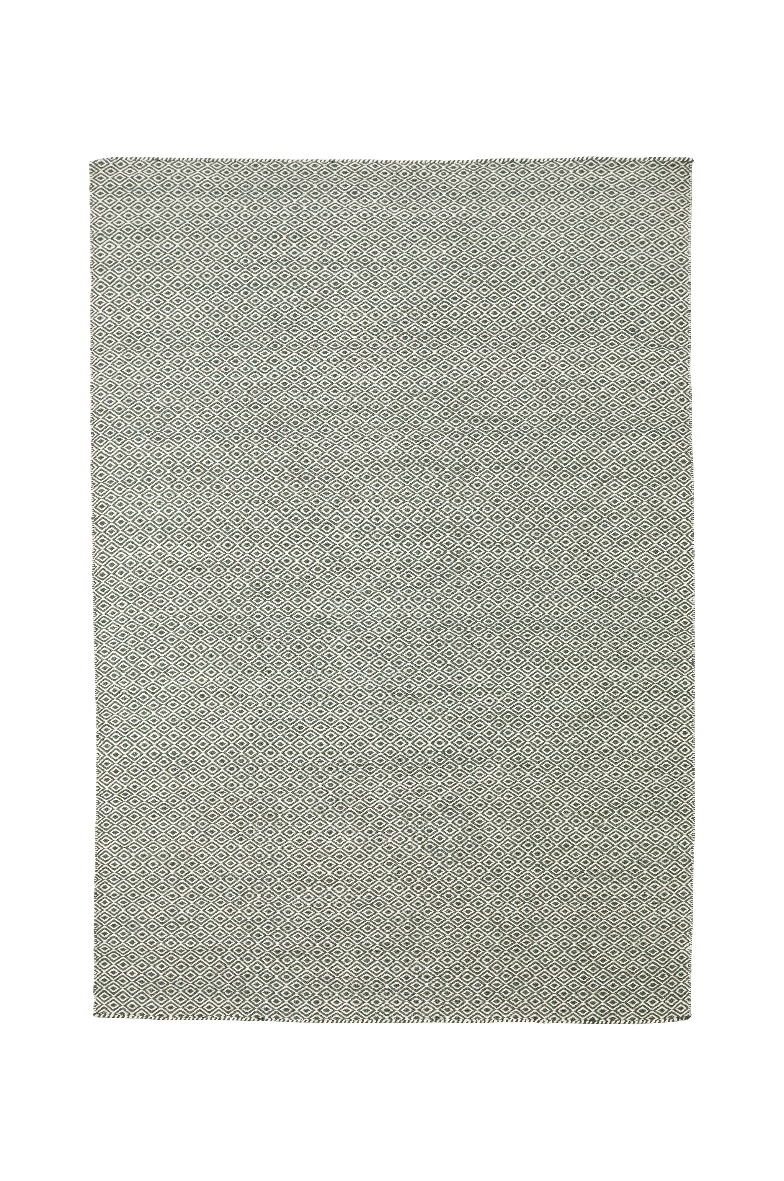 Fint, håndvevd teppe i ull med klassisk «gåsøyemønster». Varp av bomull.