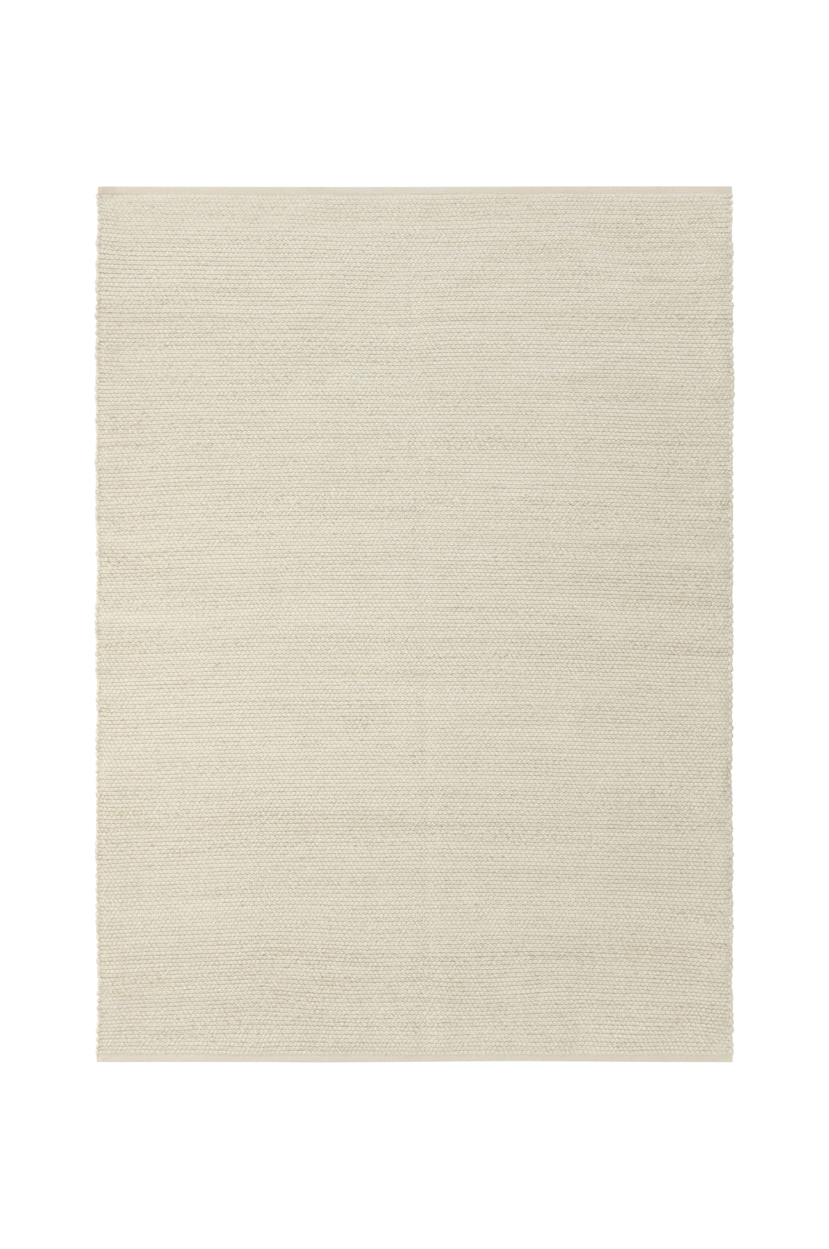 Håndvevd teppe i RWS-sertifisert ull med flettet tekstur. Varp i bomull. Teppets tykkelse 1 cm.