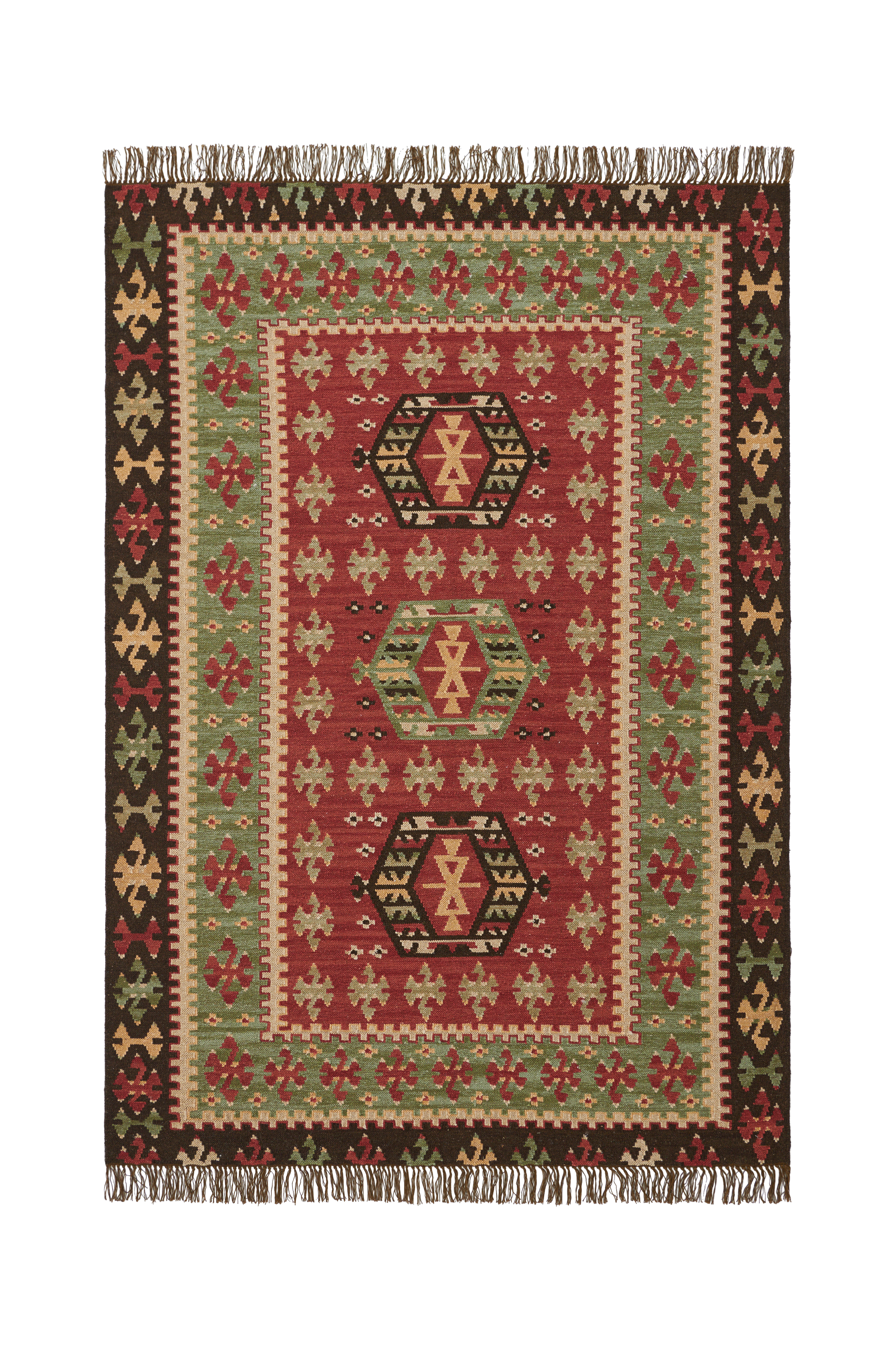 • Håndvevd og vakkert mønstret kelimteppe i ull
