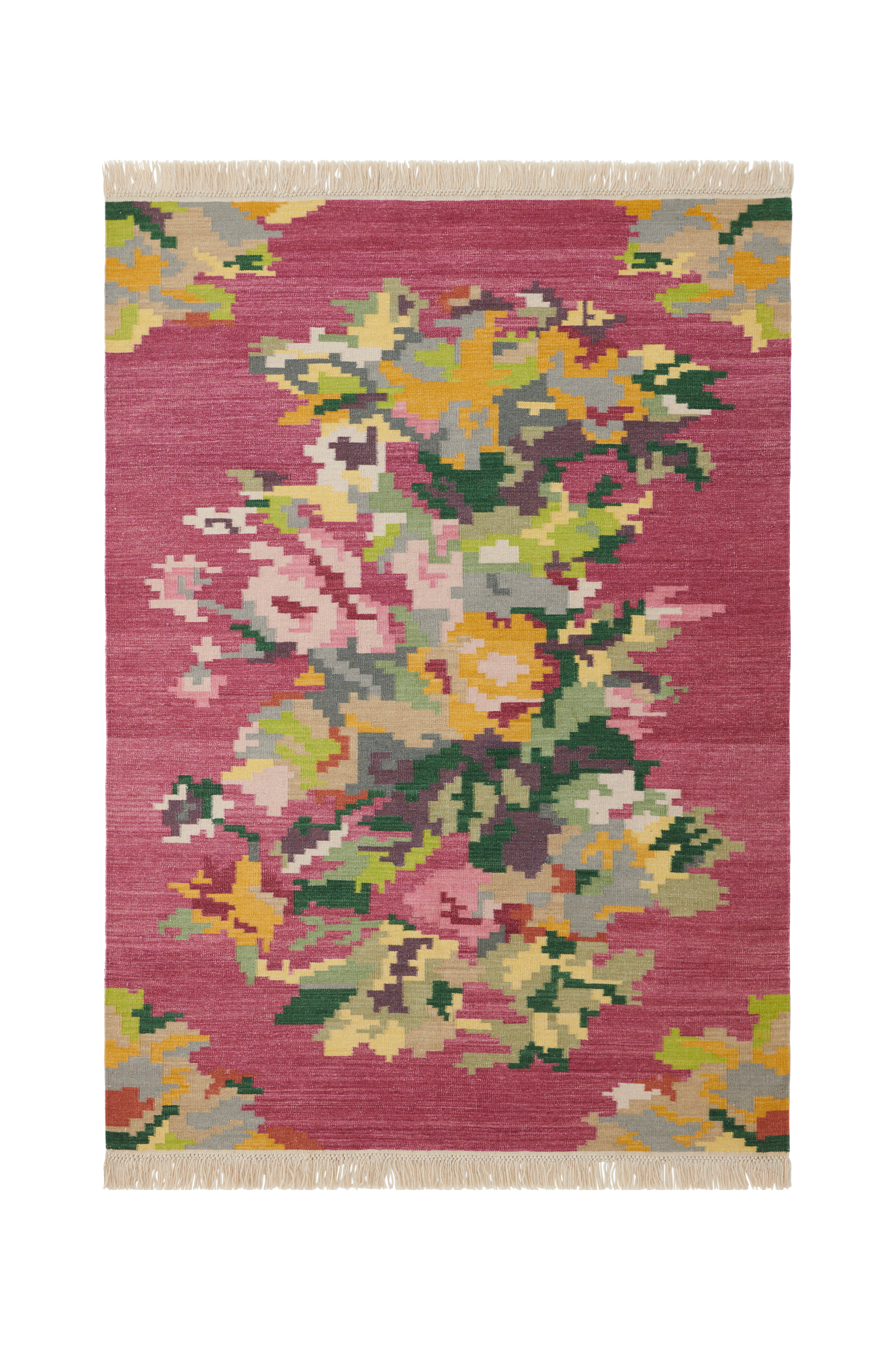 • Håndvevd og vakkert mønstret kelimteppe i ull