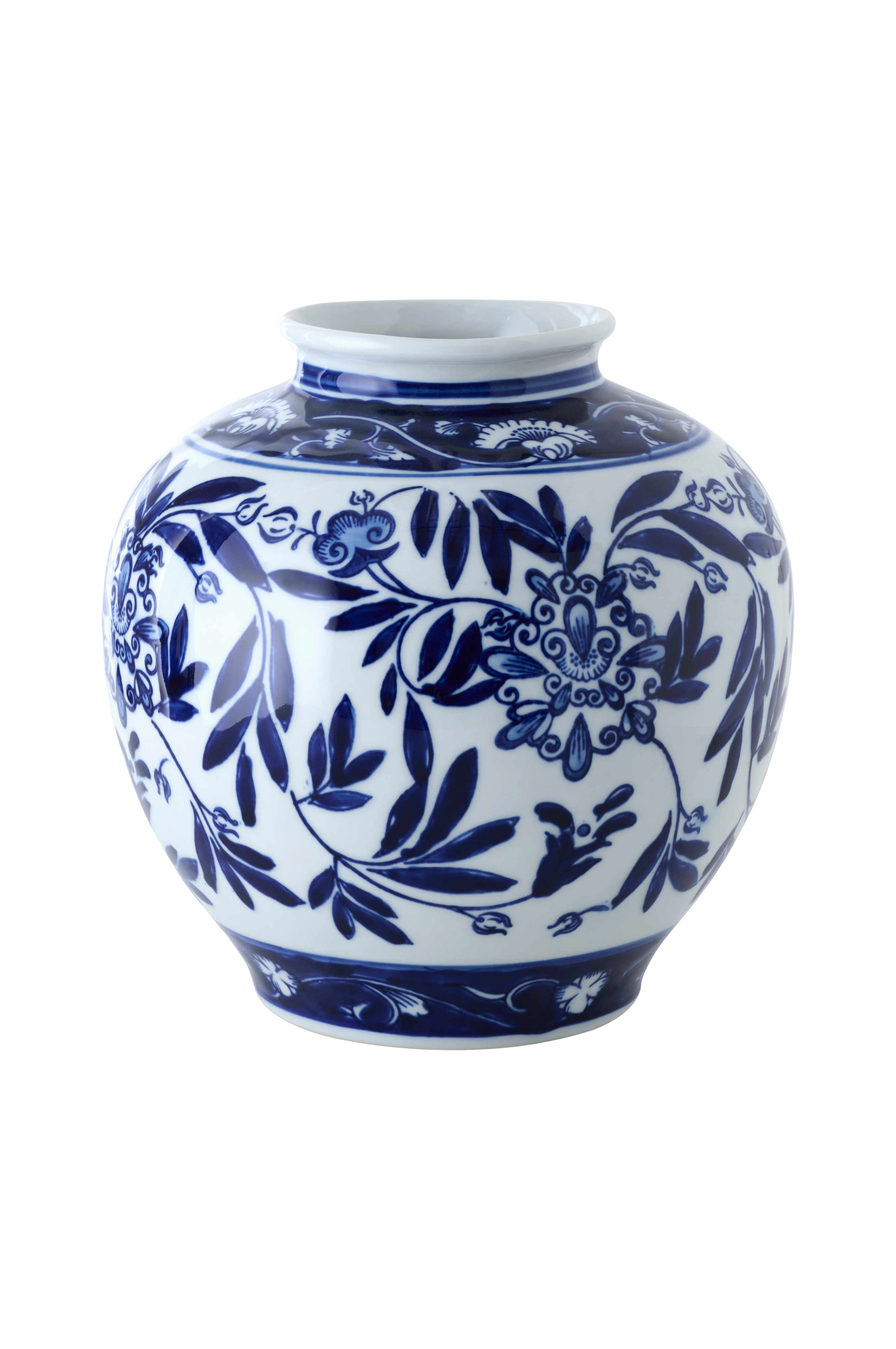 Mønstret vase av porselen. Diameter på det største ca. 21 cm, diameter innvendig åpning 9 cm. Ikke godkjent til næringsmidler.
