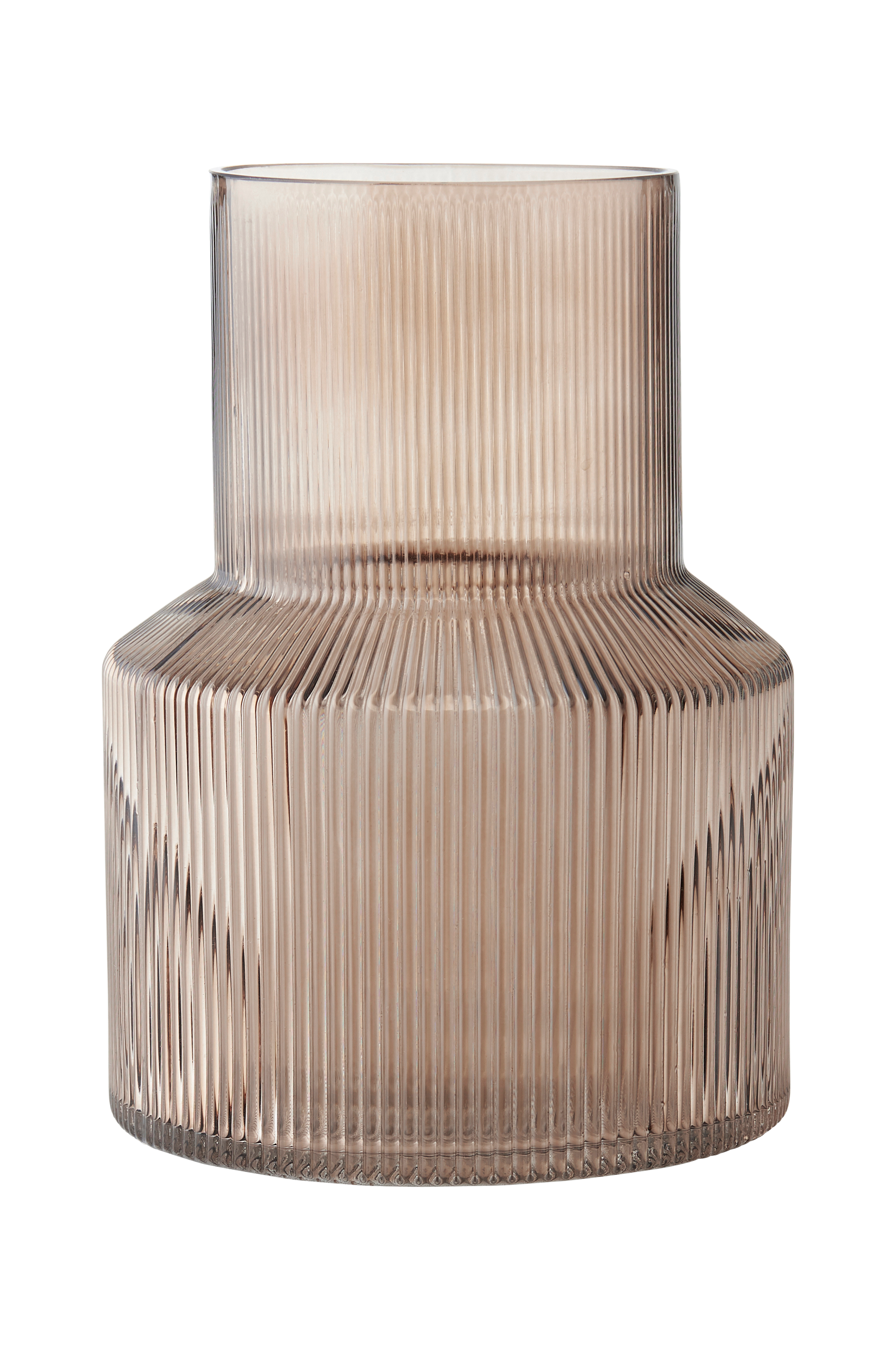 Vase av glass med rillet struktur. Høyde 20 cm. Ø bunn 14 cm, Ø åpning 10 cm.