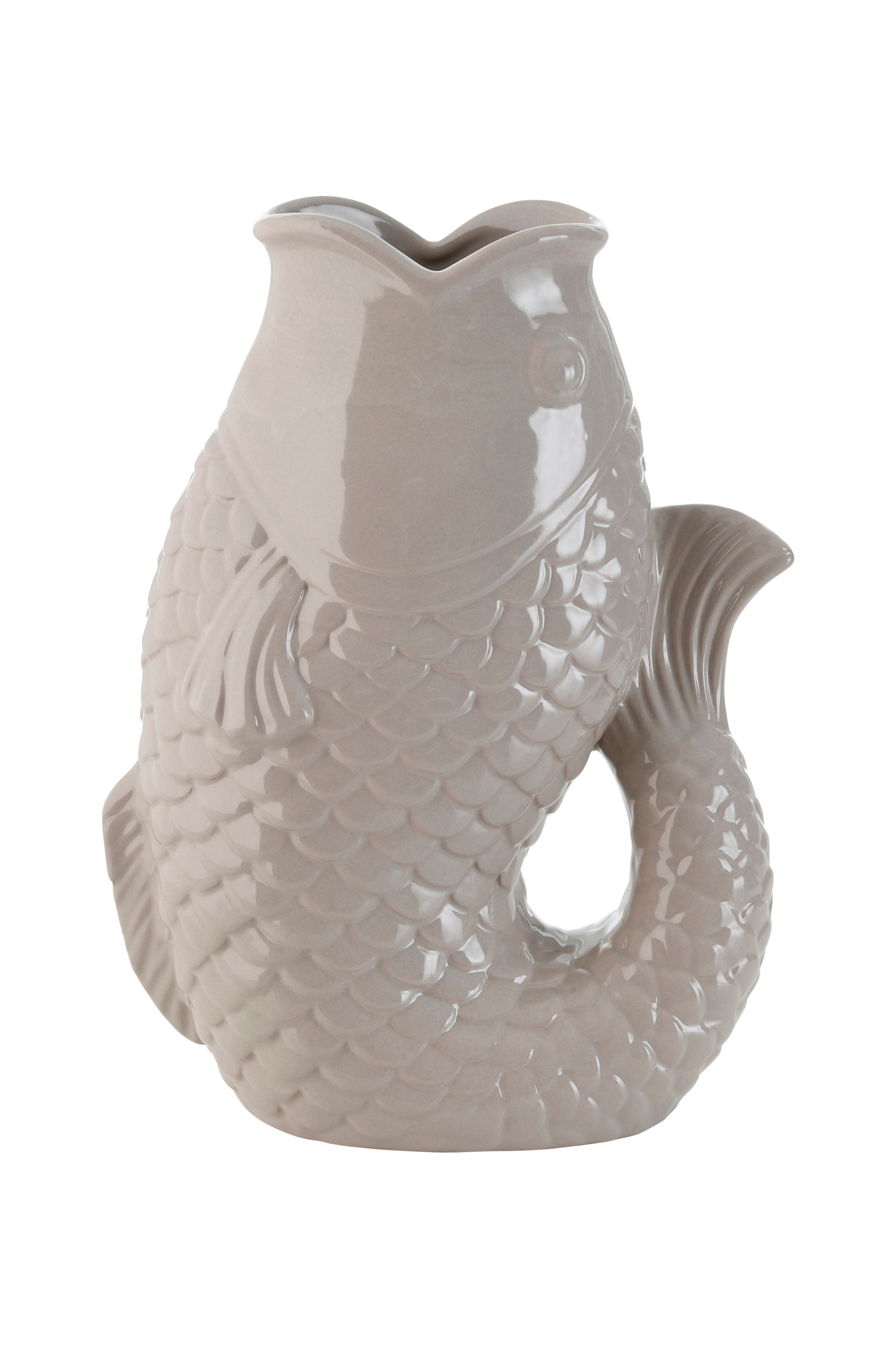 Vase formet som en fisk. Produsert av steintøy.