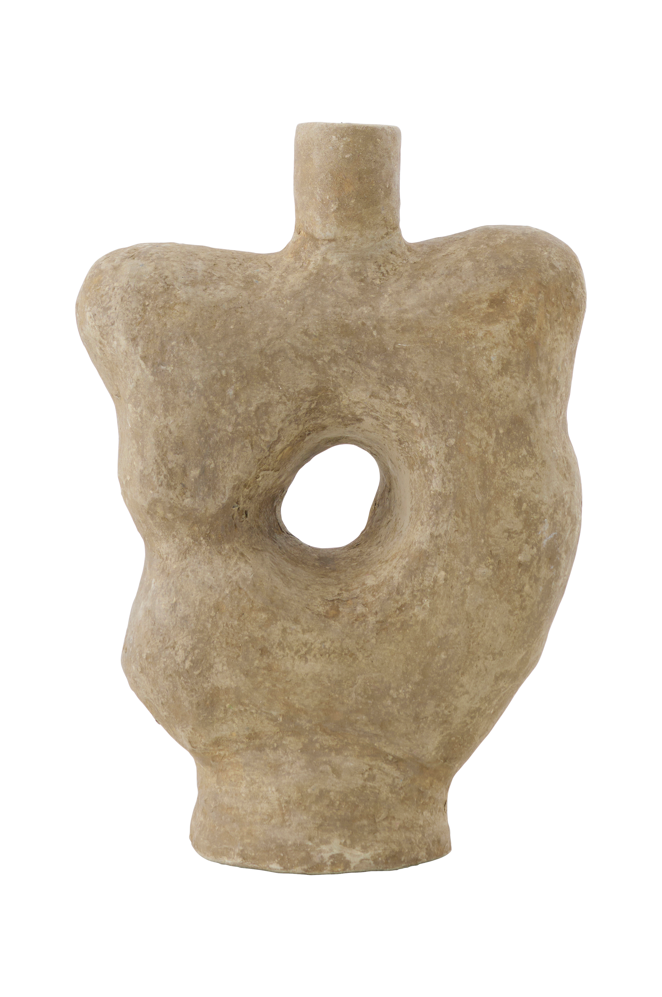 Håndlaget vase av pappmasje i stødig og stabil kvalitet.