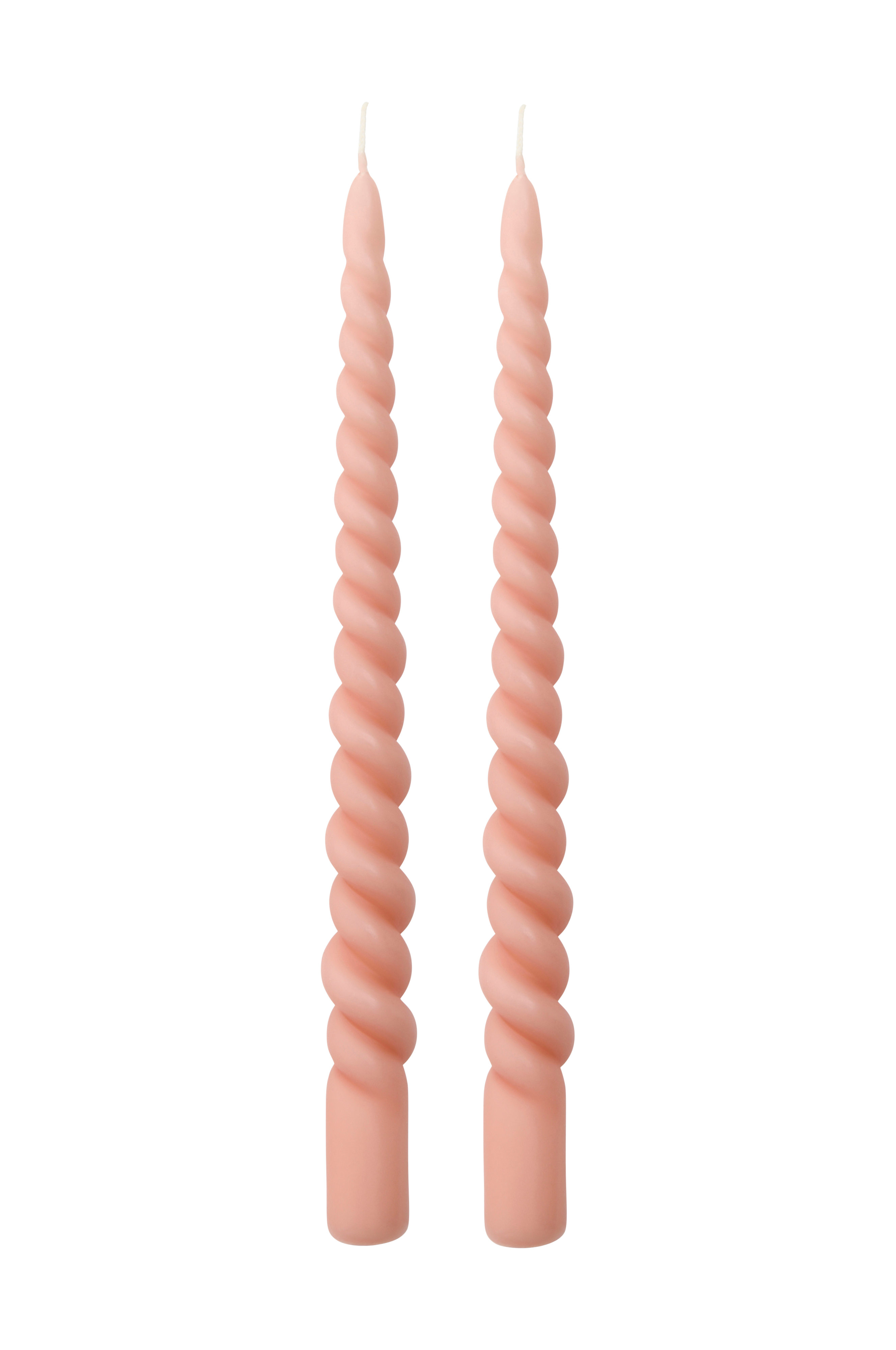 Vridde lys i 2-pk. Høyde 29 cm, diameter 2,2 cm. Brennetid ca. 9 timer. Lysene er fremstilt av 100% parafin. Parafin er brukt istedenfor stearin fordi dette materialet er mykere. Det gjør at lyset kan vris i fasong. Det er ikke mulig med stearin som er for hardt til å kunne vris.