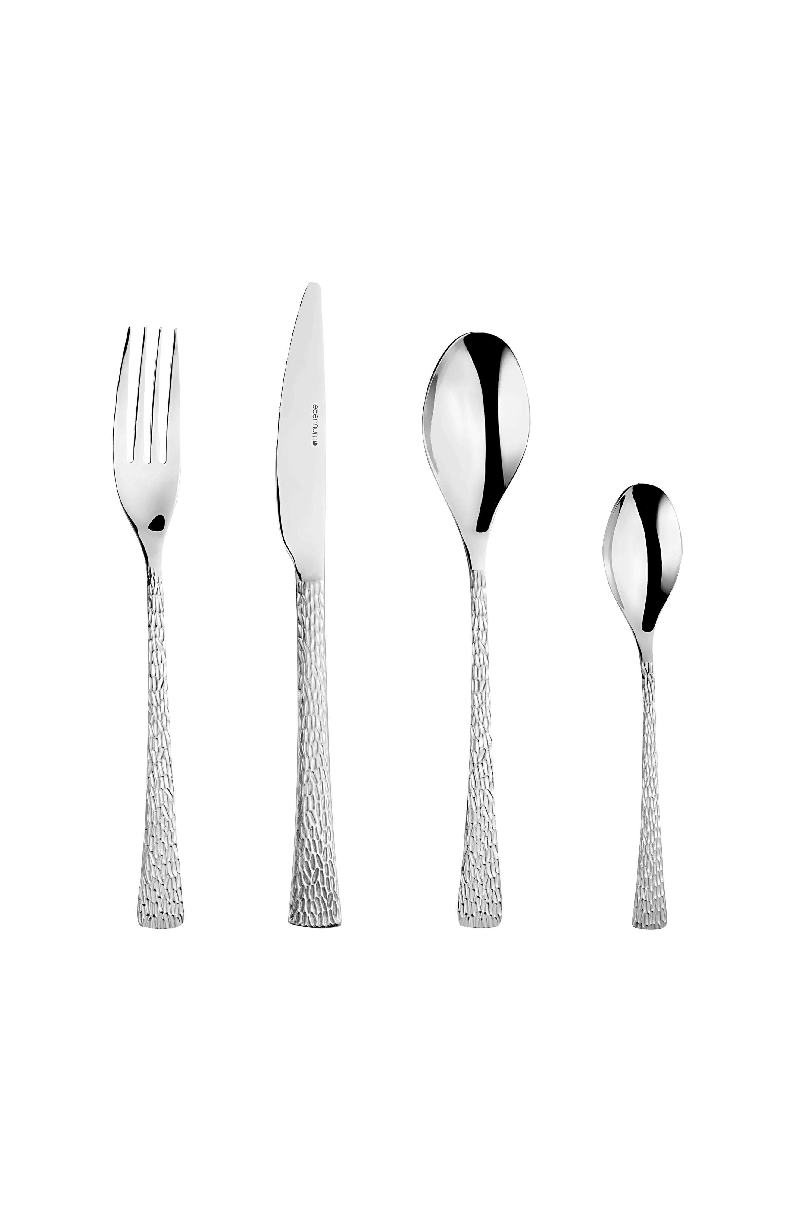 Tidløst elegant bestikksett fra eternum, et tidløst bestikksett med 72 deler fra eternum, laget av 18/10 rustfritt stål med sandpolerte skaft. Settet, som leveres i et praktisk oppbevaringsetui, inneholder tolv gafler, kniver, spiseskjeer, teskjeer, forrettgafler og forrettkniver.