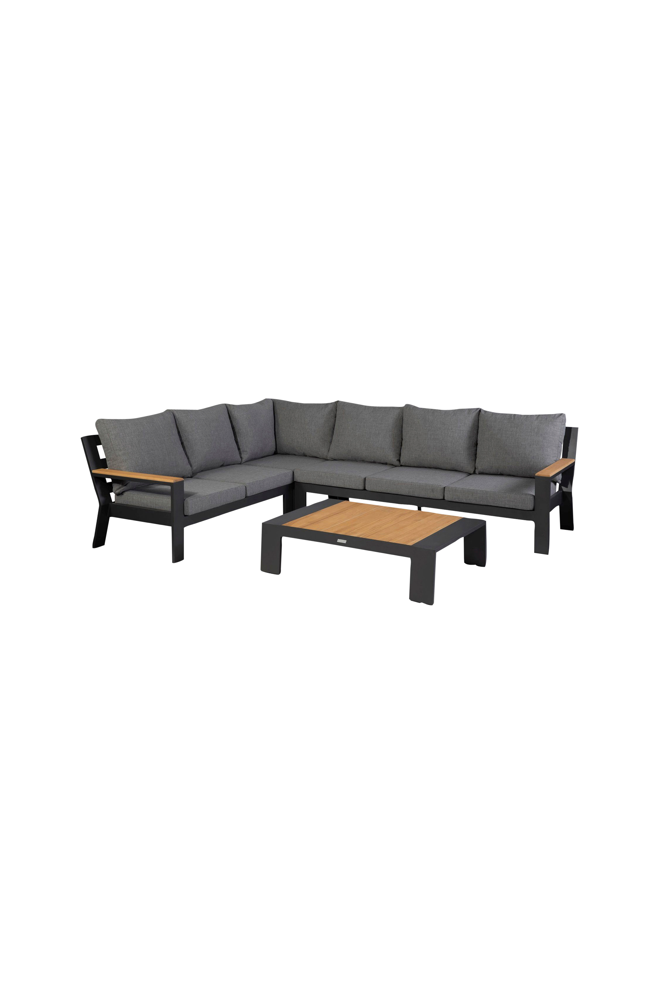 Hjørnesofaen Valerie har en stamme av aluminium som er vakkert dekorert med FSC®-sertifisert teak. Disse materialene er lettstelte.