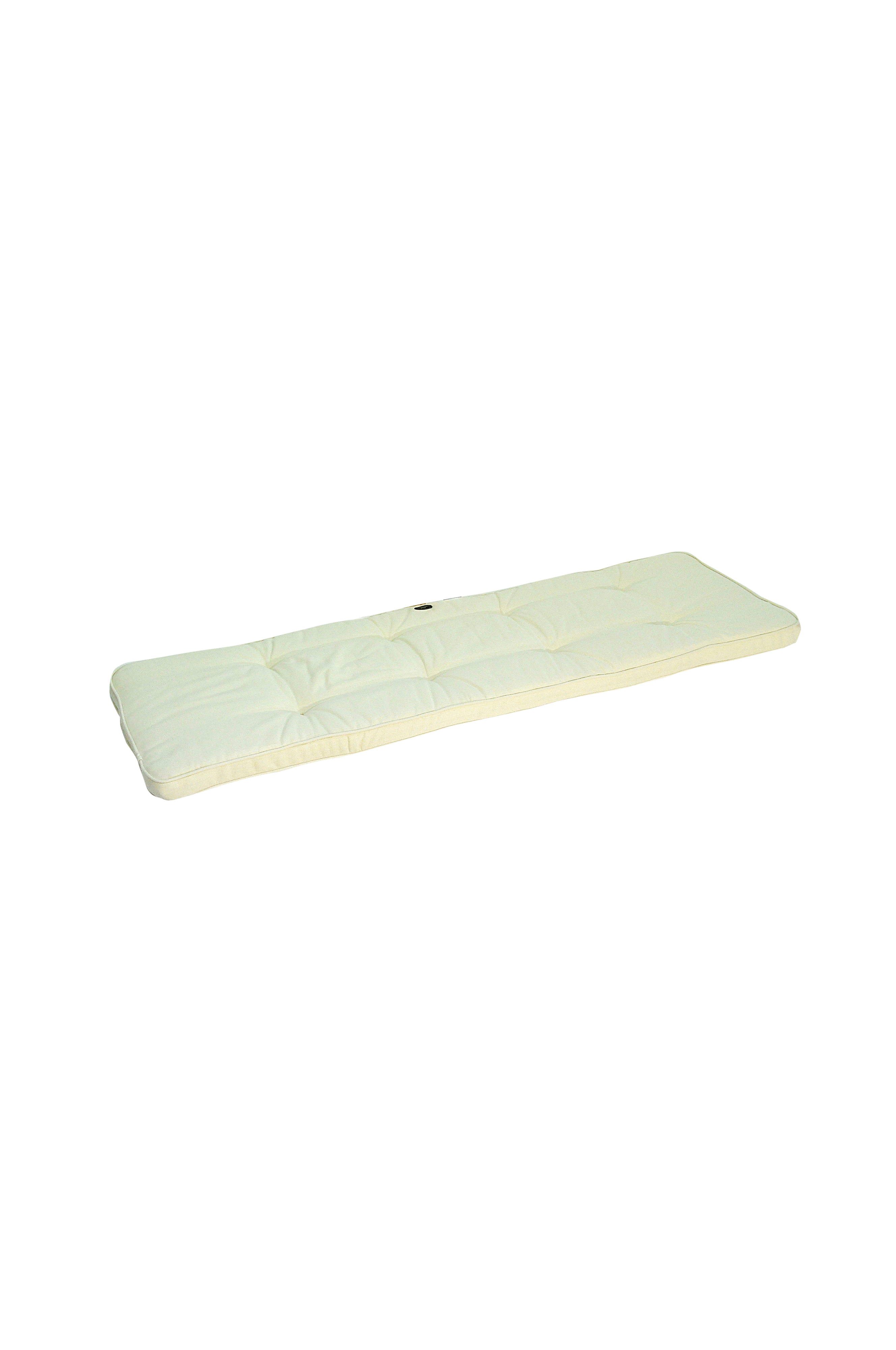 Pute i strukturdralon. Fibervatt trukket rundt en tykk polyeterkjerne for myk komfort. Bokssydd