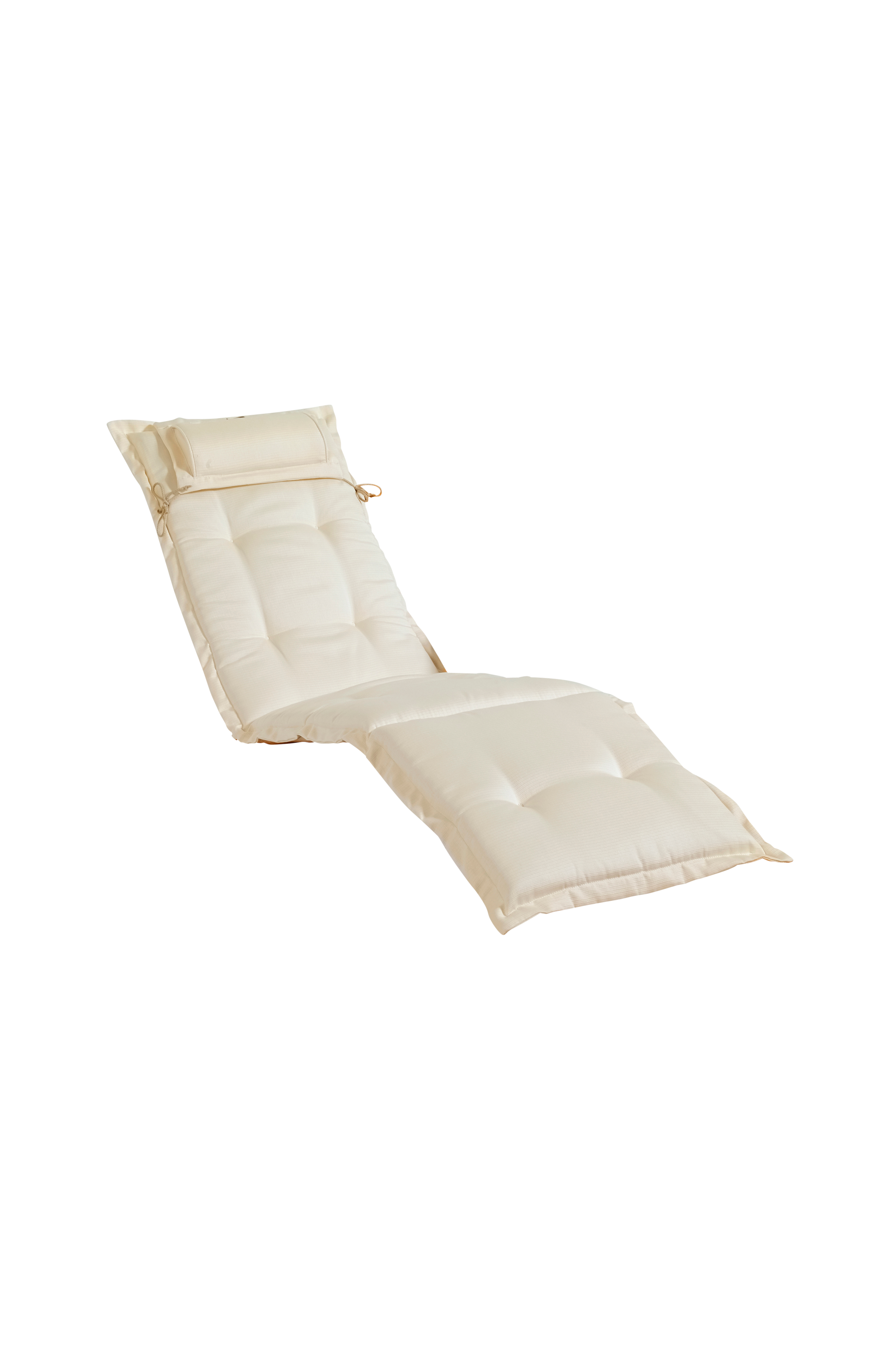 Stolpute i strukturdralon med nakkepute. Fibervatt trukket rundt en tykk polyeterkjerne for myk komfort.