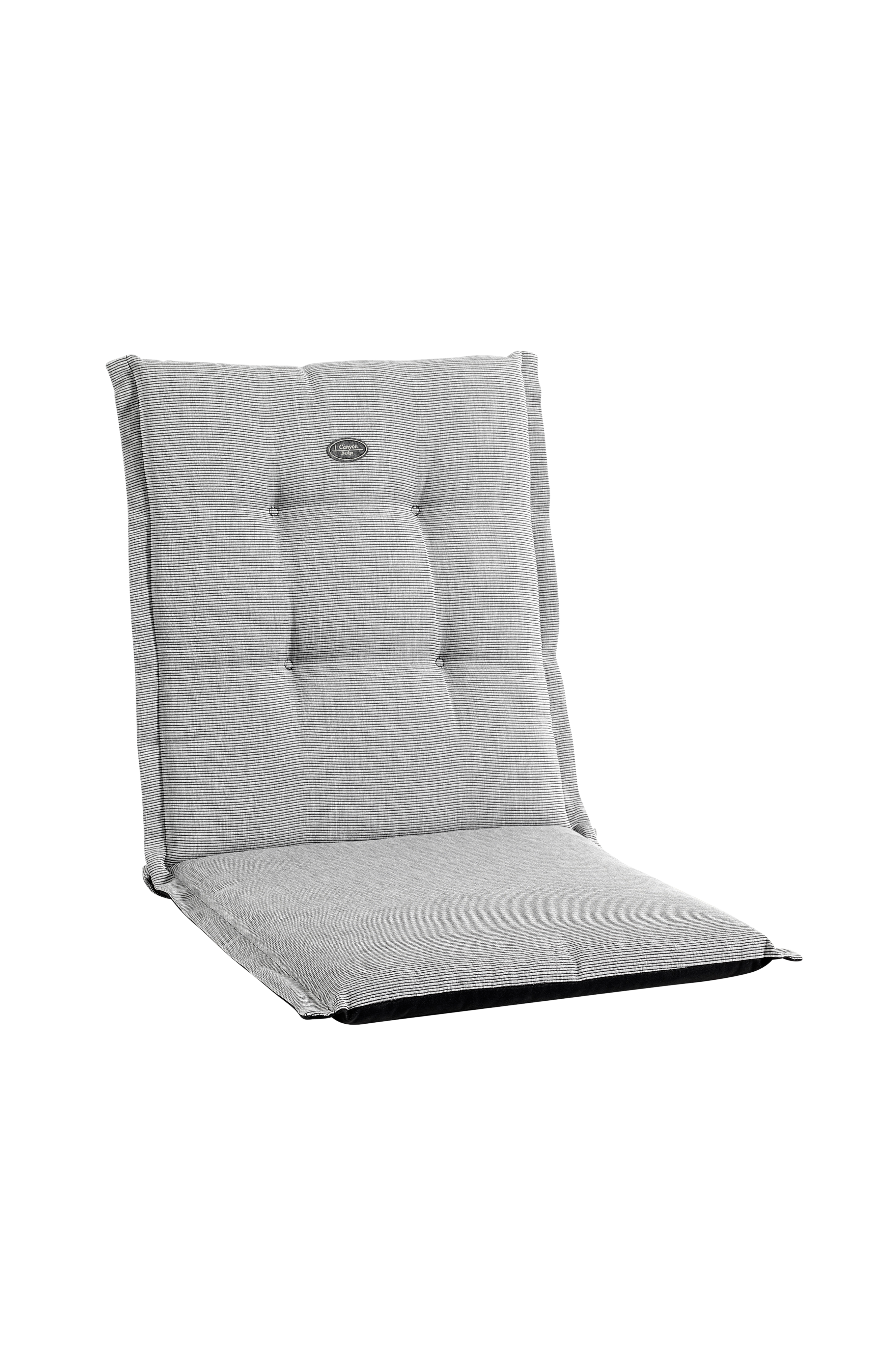 Pute i strukturdralon. Fibervatt trukket rundt en tykk polyeterkjerne for myk komfort.