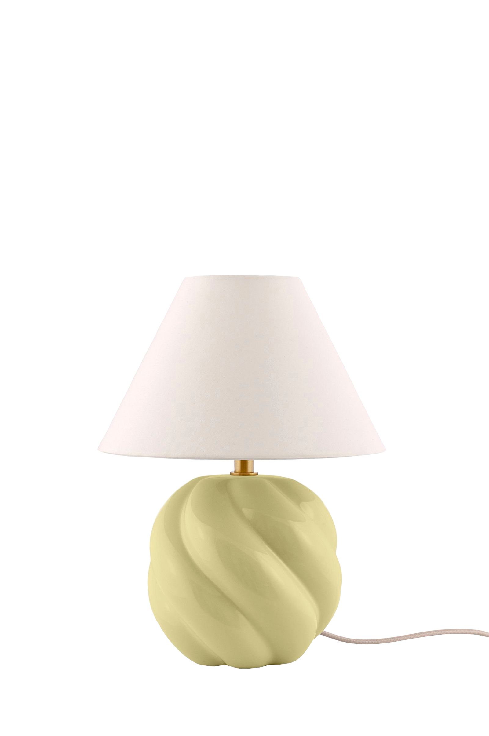 Dahlia bordlampe kombinerer skulpturell form med myk eleganse. Den blanke keramiske sokkelen med sin virvlende tekstur kompletteres av en raffinert bomullsskjerm som sprer et mildt, omgivende lys. Lampeholderen har et dreibart ledd som gjør det mulig å justere skjermen til en rett posisjon. Lampen leveres med en 200 cm lang tekstilkabel med bryter og europakontakt. Den er kompatibel med dimmer, og lyskilden er ikke inkludert. Lampen er håndlaget i keramikk, noe som betyr at farge, form og dimensjoner kan variere.