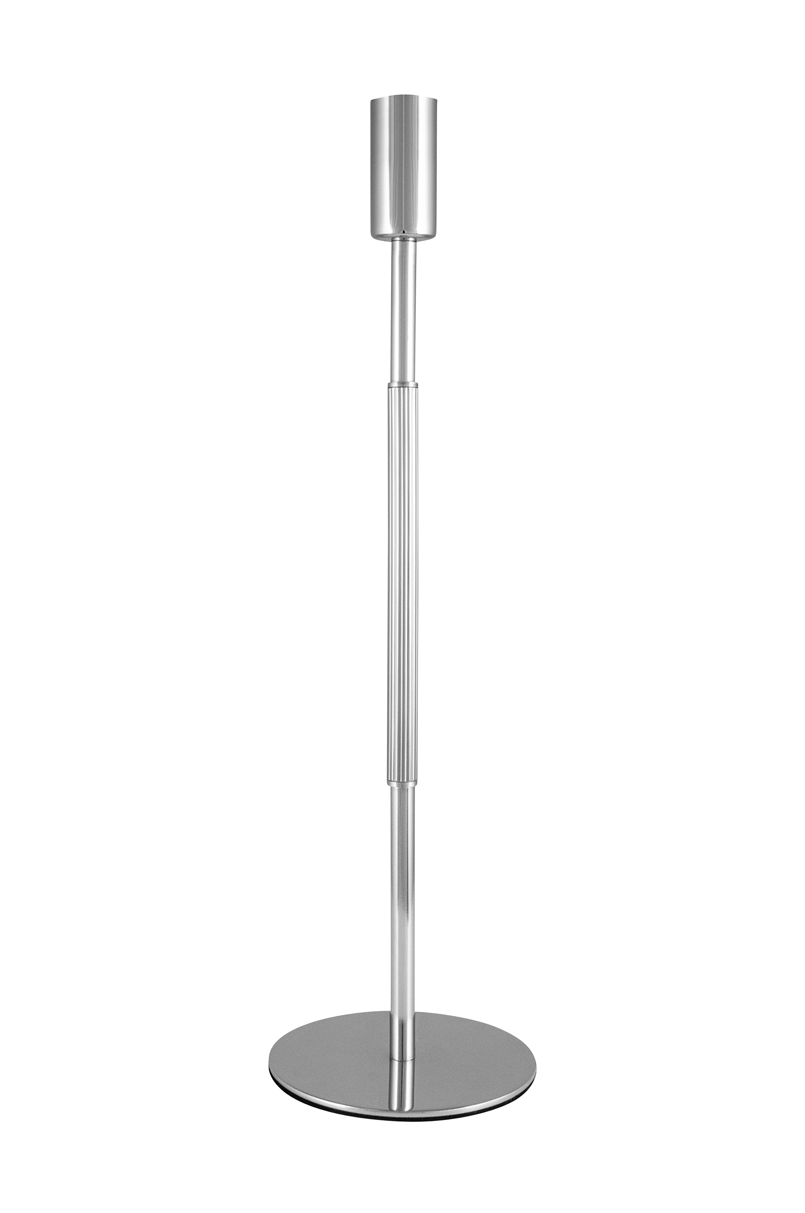 Liten enkel bordfot i kromfarget metall med en lang riflet detalj på stangen. Elsa har en 200 cm lang transparent ledning med bryter. Design, GL Design Studio. Bredde 12 cm, dybde 12 cm og høyde 40 cm. Sokkel: 1xE14. Maks 40 W. Lyspære er ikke inkludert.