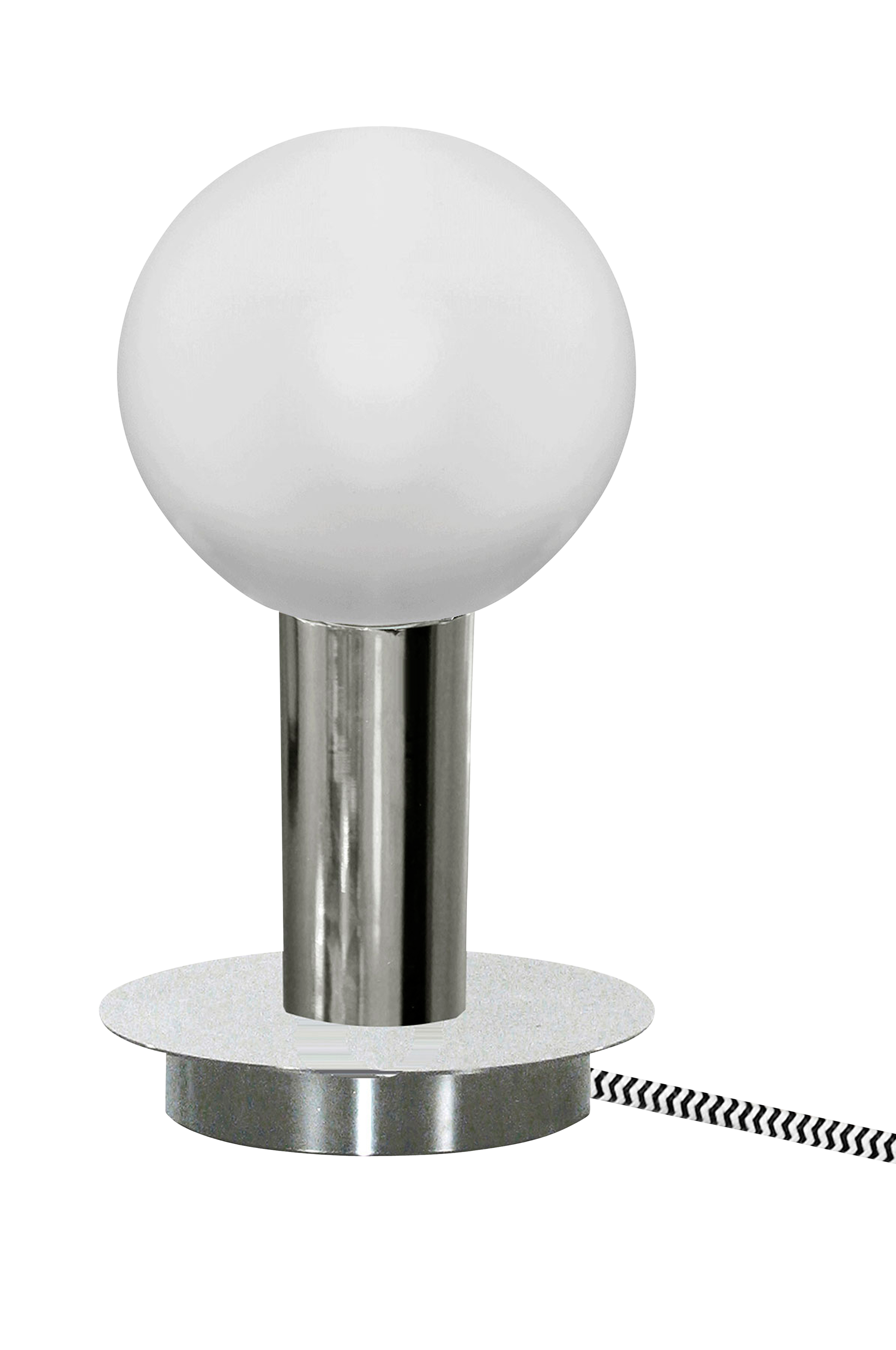 Bordlampe Torch. Kommer i tre farger: Svartlakkert metall, hvitlakkert metall og forkrommet metall. 190 cm svart tekstilledning med bryter. Lyspære er ikke inkludert. Høyde minus lyspære 12 cm og diameter 11 cm. Sokkel E27. Maks 60W. Design Patrik Hall.