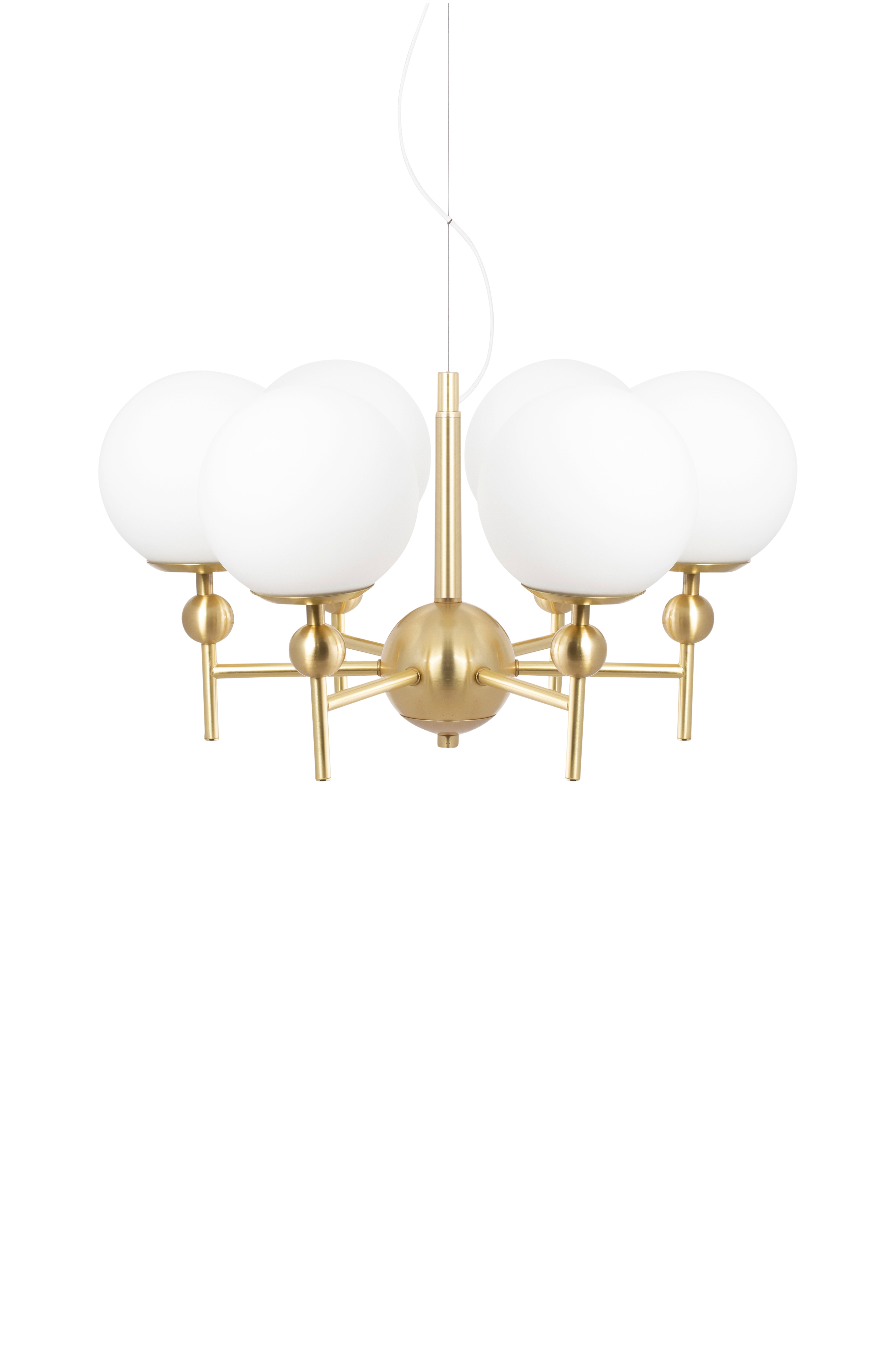 Astrid er en klassisk pendel med matt glass og børstet metall. Lampen har en 120 cm lang tekstilkledd ledning med vaier, samt takkopp i matchende børstet metall. Design: GL Design Studio. Bredde 50 cm, dybde 50 cm og høyde 28 cm. Sokkel: 6xE14 Maks 40W. Lyspære ikke inkludert. Ikke jordet.