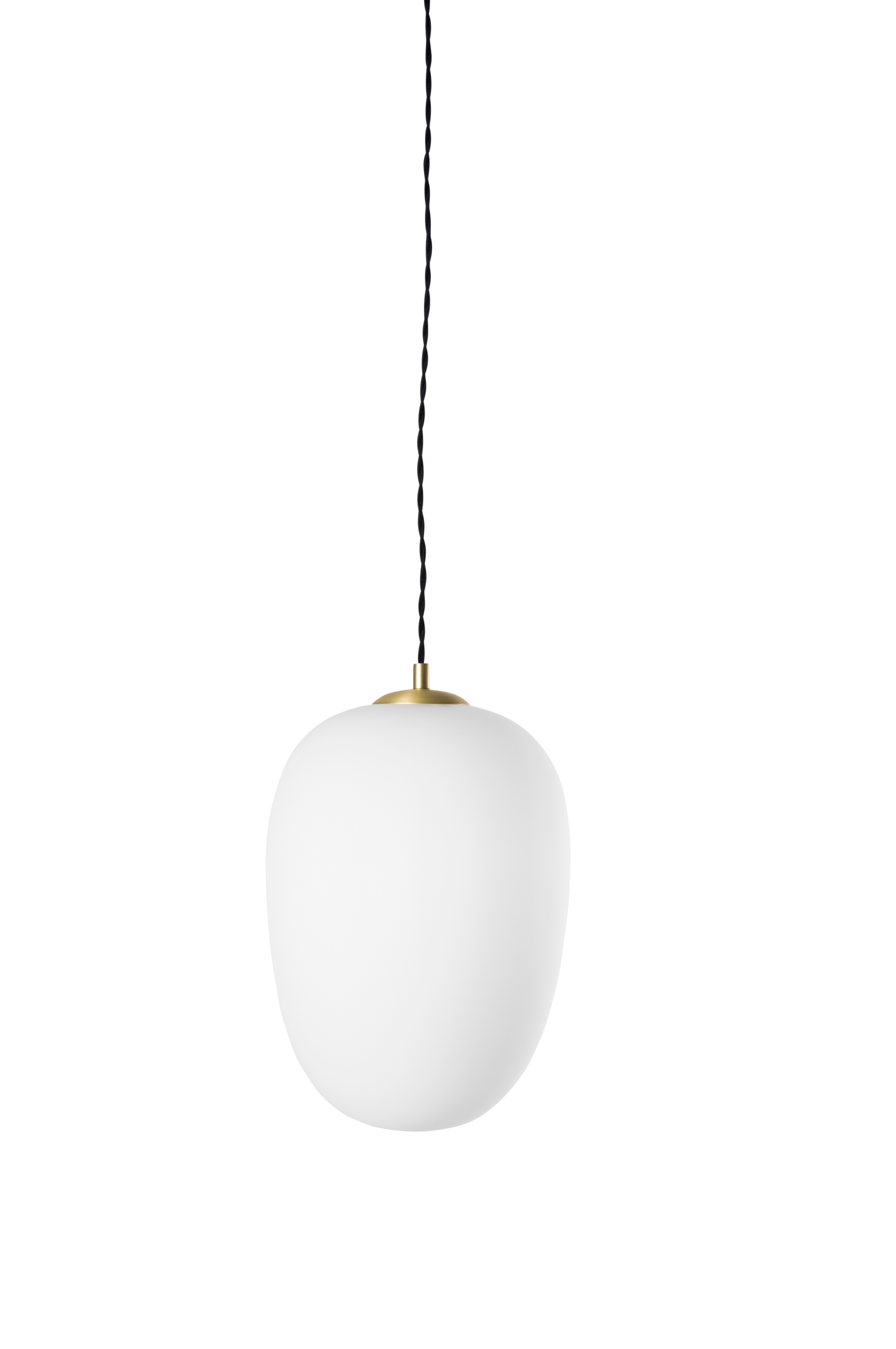 En moderne klassisk pendel som med sitt opalhvite matte glass gir en ro over rommet. Vakre detaljer i børstet messing og 120 cm langt svart tvunnet tekstilledning. Høyde 30 cm, diameter 20 cm. Sokkel G9 Maks 42W. Design: Patrick Hall.