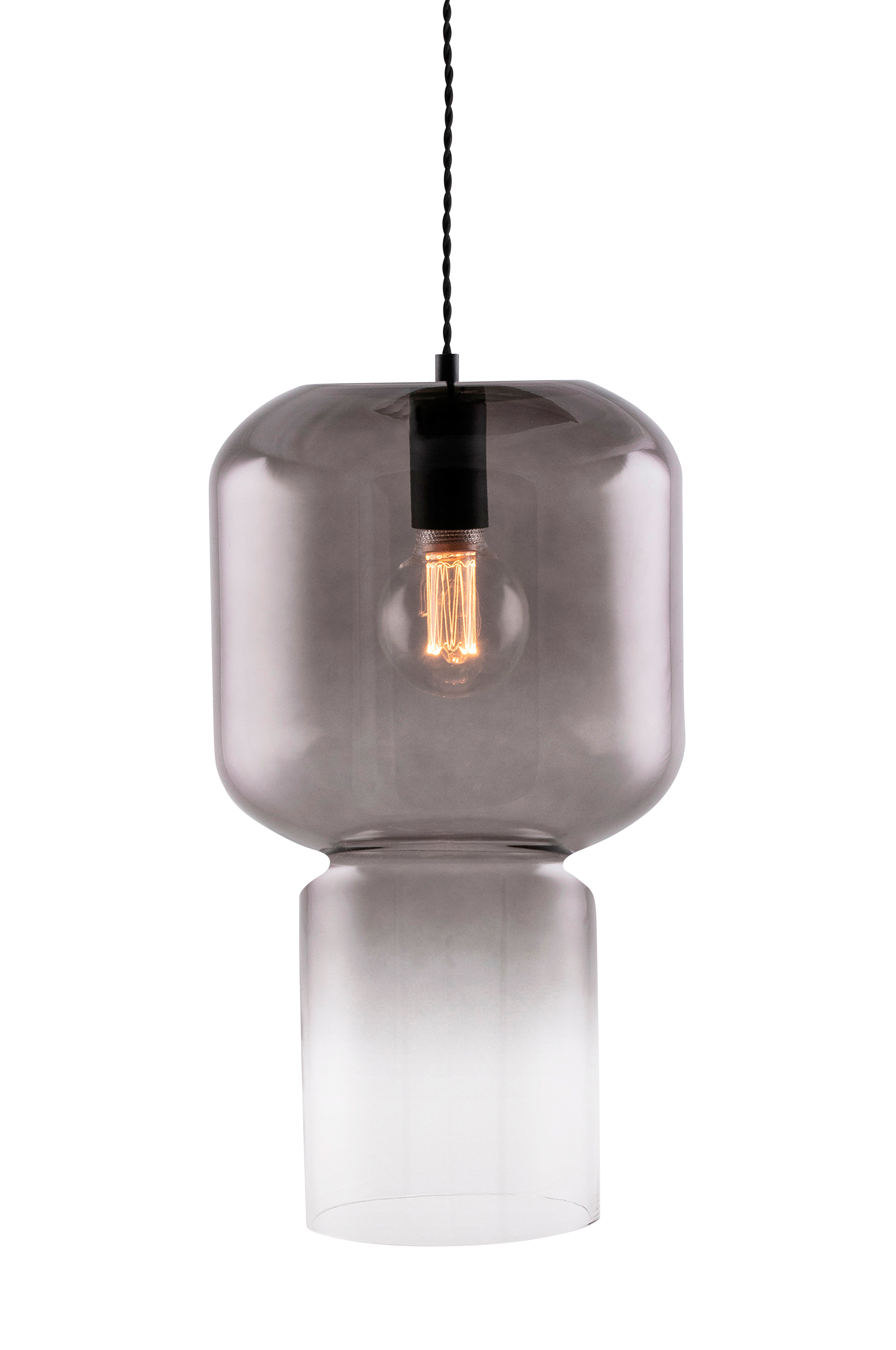Nog taklampe har et stilrent formspråk. Glasskuppelen er støpt i ett stykke. Nog har en 120 cm lang svart snurret tekstilledning samt takkopp i svart plast. Design, Mimmi T. Silesius. Bredde 24,5 cm, dybde 24,5 cm og høyde 45 cm. Lampesokkel 1xE27. Maks 60 W. Lyspære er ikke inkludert.