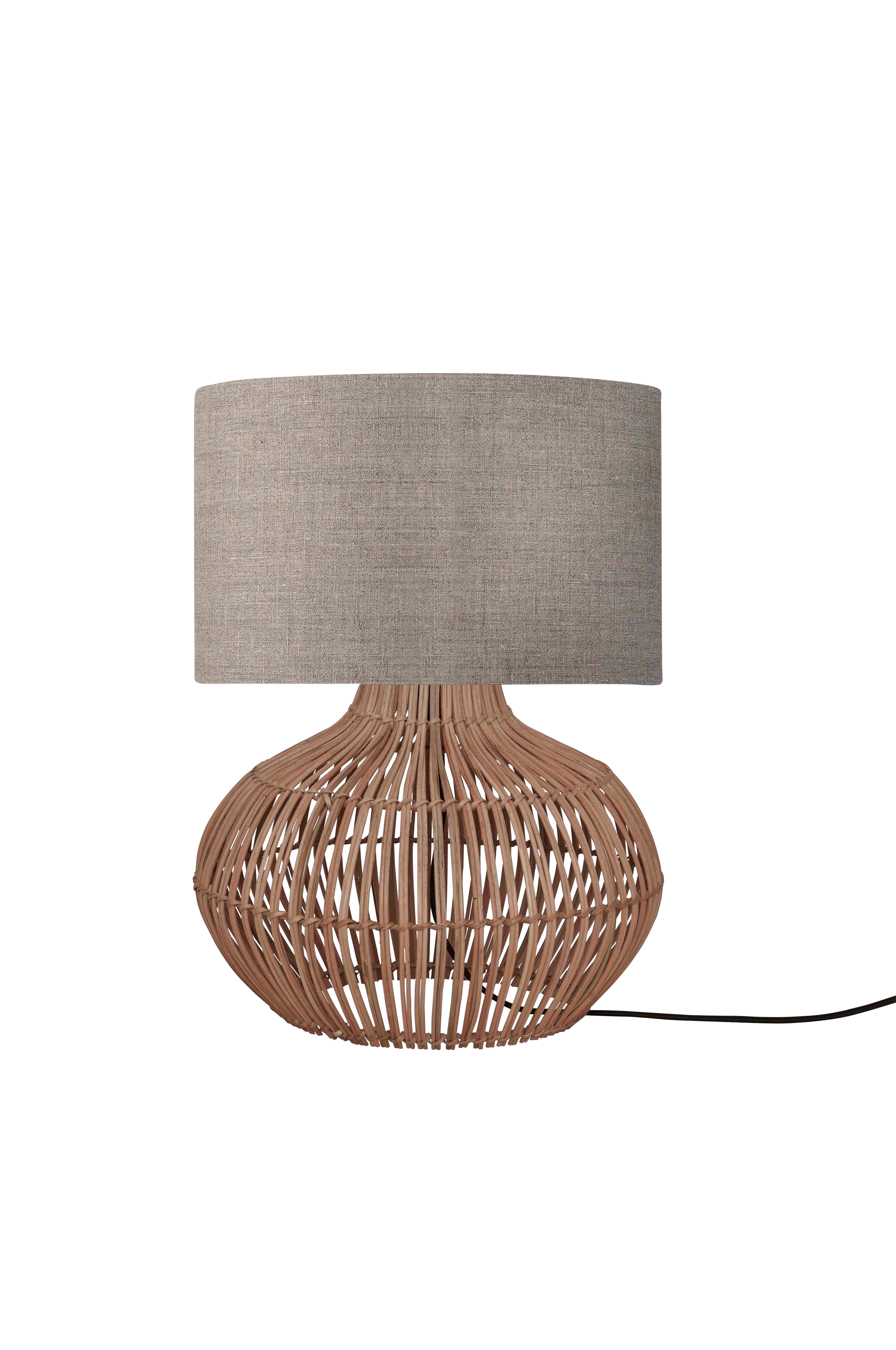 Bordlampen Kalahari er laget av rotting og har en skjerm av lin. Passer bra på skrivebordet eller ved nattbordet.