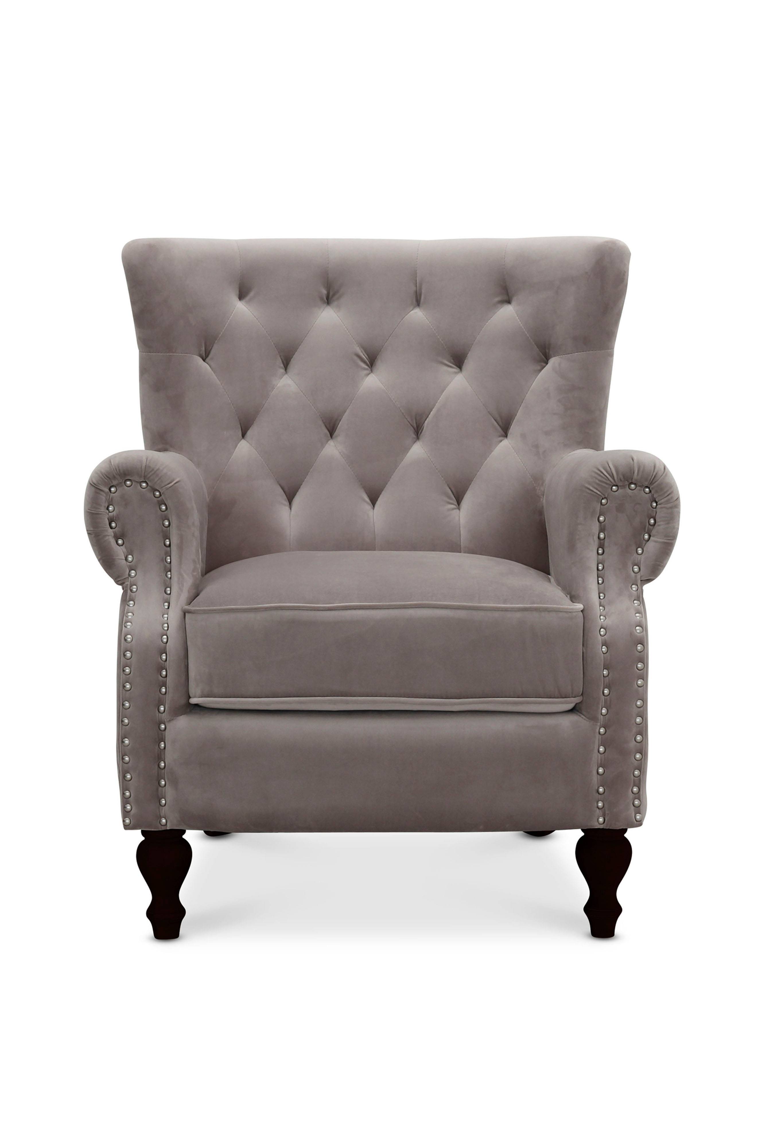 Lenestol med stamme i kryssfiner/massiv eukalyptus. Trekket er i fløyel med 30 000 Martindale, og er hverken avtagbart eller vaskbart. Setet har nozagfjærer og polyeter. Ryggen har polstring av polyeter og høyelastisk fiberfill.