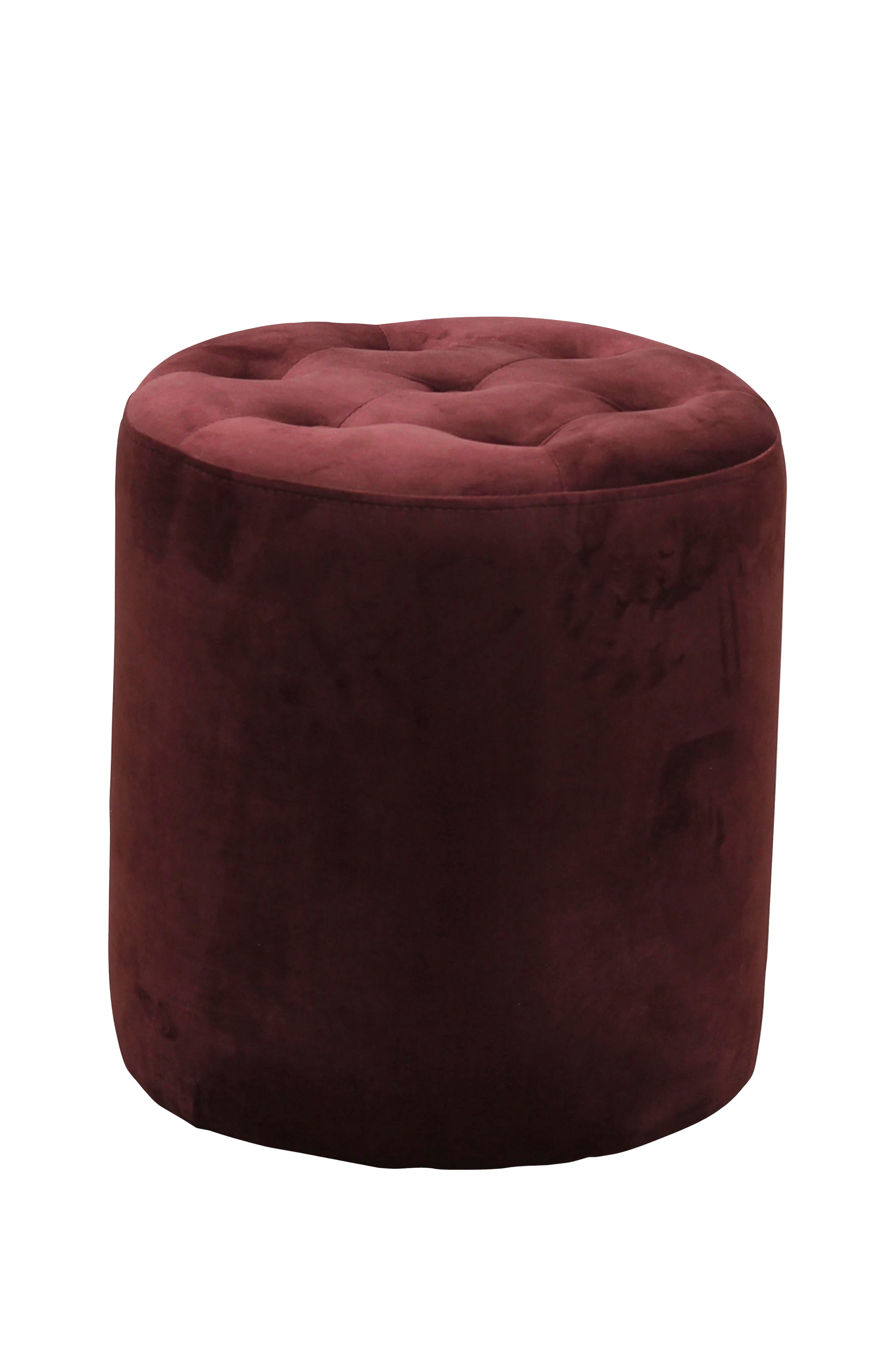 Sittepuff med stamme i kryssfiner/massiv eukalyptus. Trekket er i fløyel med 30 000 Martindale, og er hverken avtagbart eller vaskbart. Puffen har fyll av polyeter. Diameter 35 cm, høyde 38 cm.