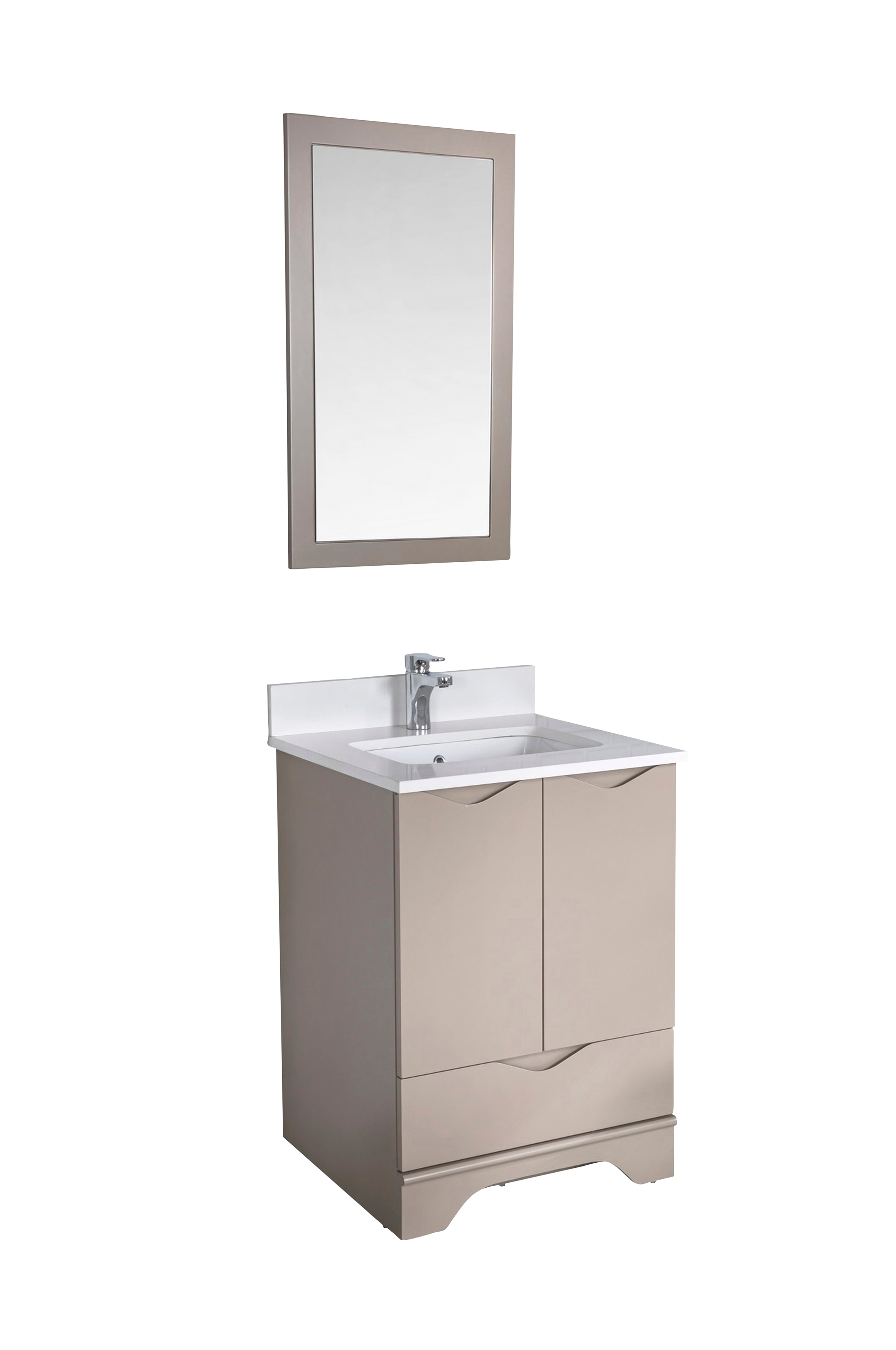 100% lakkert MDF (massivt tre) (tykkelse: 18 mm) benkeplate: 100% hvit kvarts & montert håndvask av porselen
