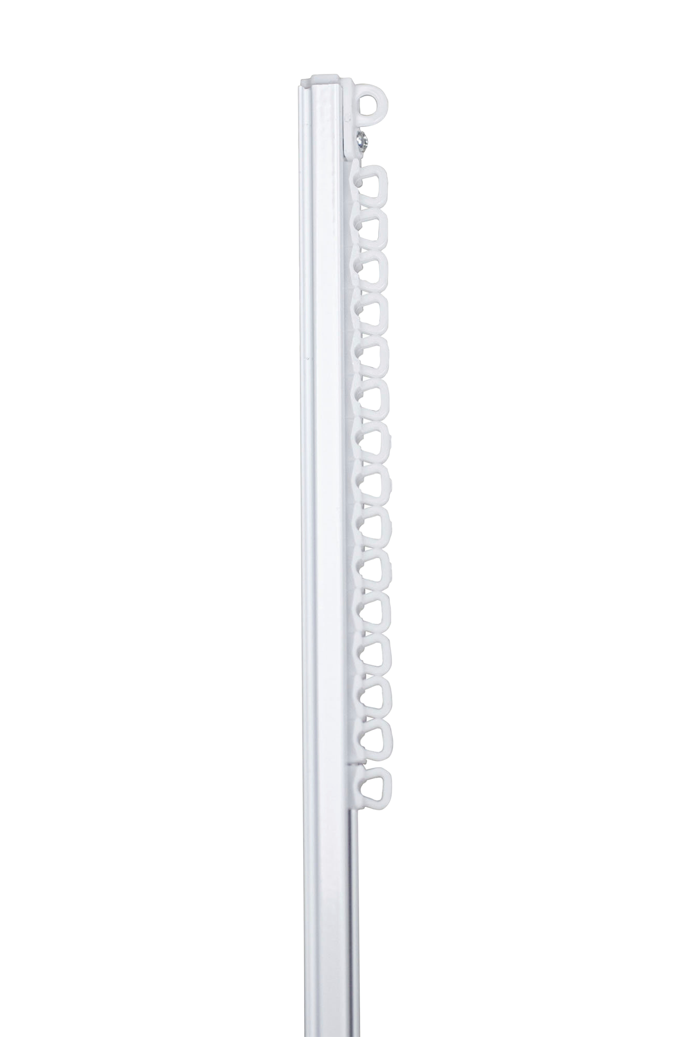 Hvit 150 cm aluminiumsskinne for lette gardiner. 15x10 mm. Perfekt takskinne når du vil at dine gardiner skal gå fra tak til gulv. I pakken inngår skinne, stopper, fester og glidere for komplett oppheng. Det inngår 15 glidere per meter skinne. Monteres i taket med skruer.