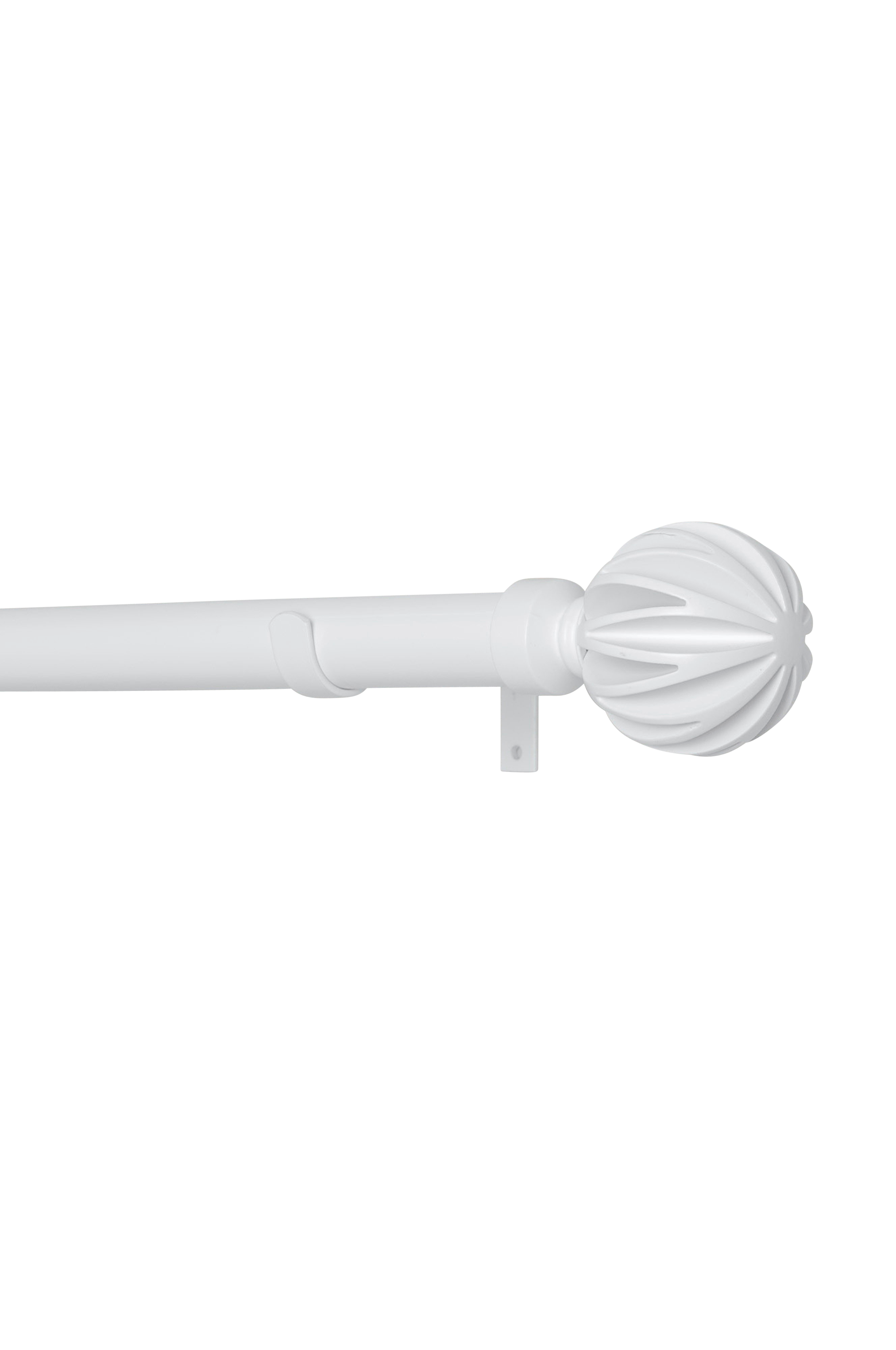 Komplett gardinstang i metall (25/28 mm) med dekorative finialer. Settet inneholder justerbare stenger (110-200 cm), 2 finials og 3 justerbare veggbraketter (7-9 cm).