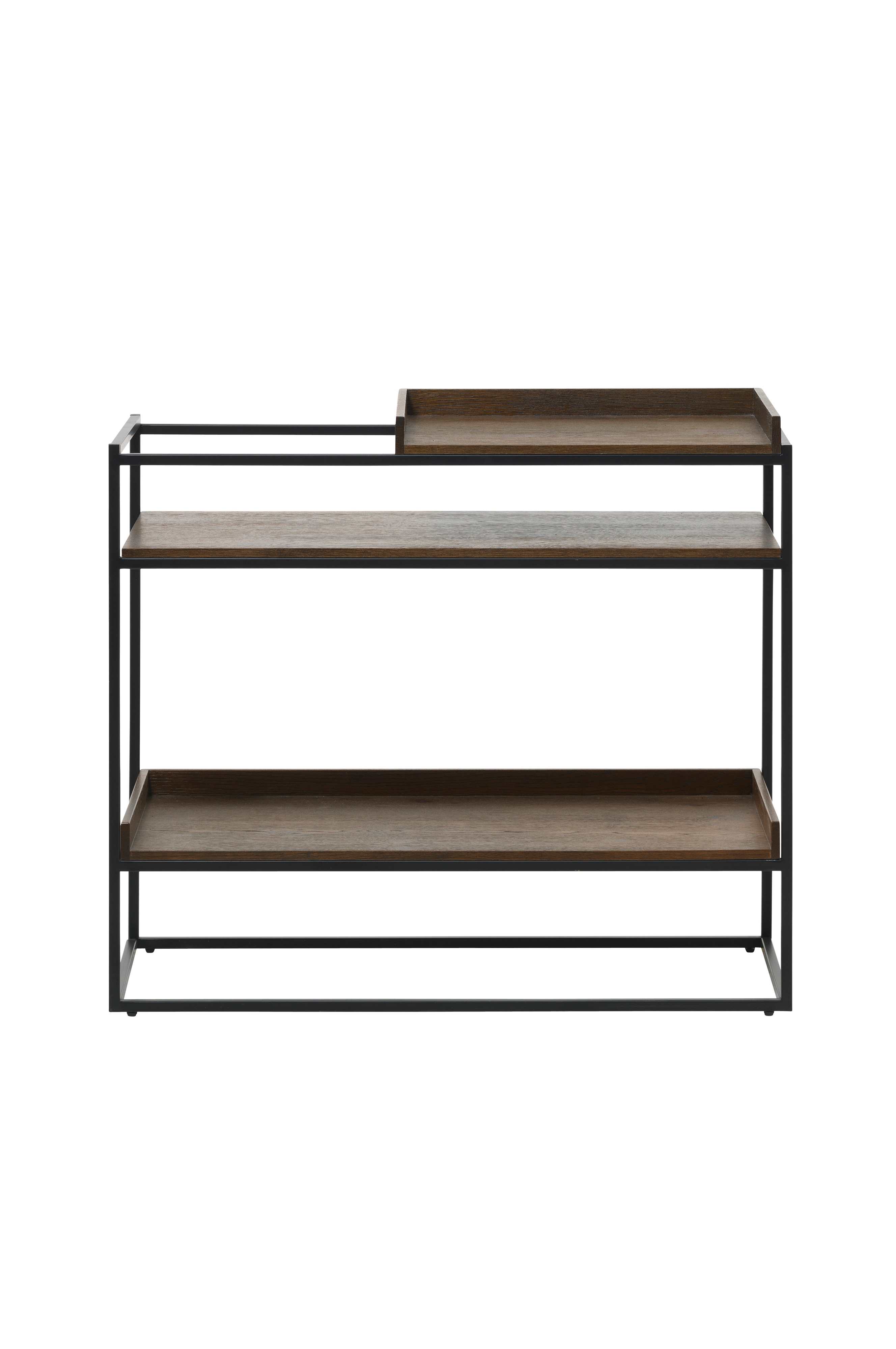 Firkantet, luftig, svart metallstamme i kontrast til mørk, røykfarget eikefinér som fremheves av lett børsting og med innebygde håndtak. Kolleksjonen Lindköping, i industristil med en minimalistisk, moderne silhuett, passer inn i ethvert kjøkken, stue eller spisestue.