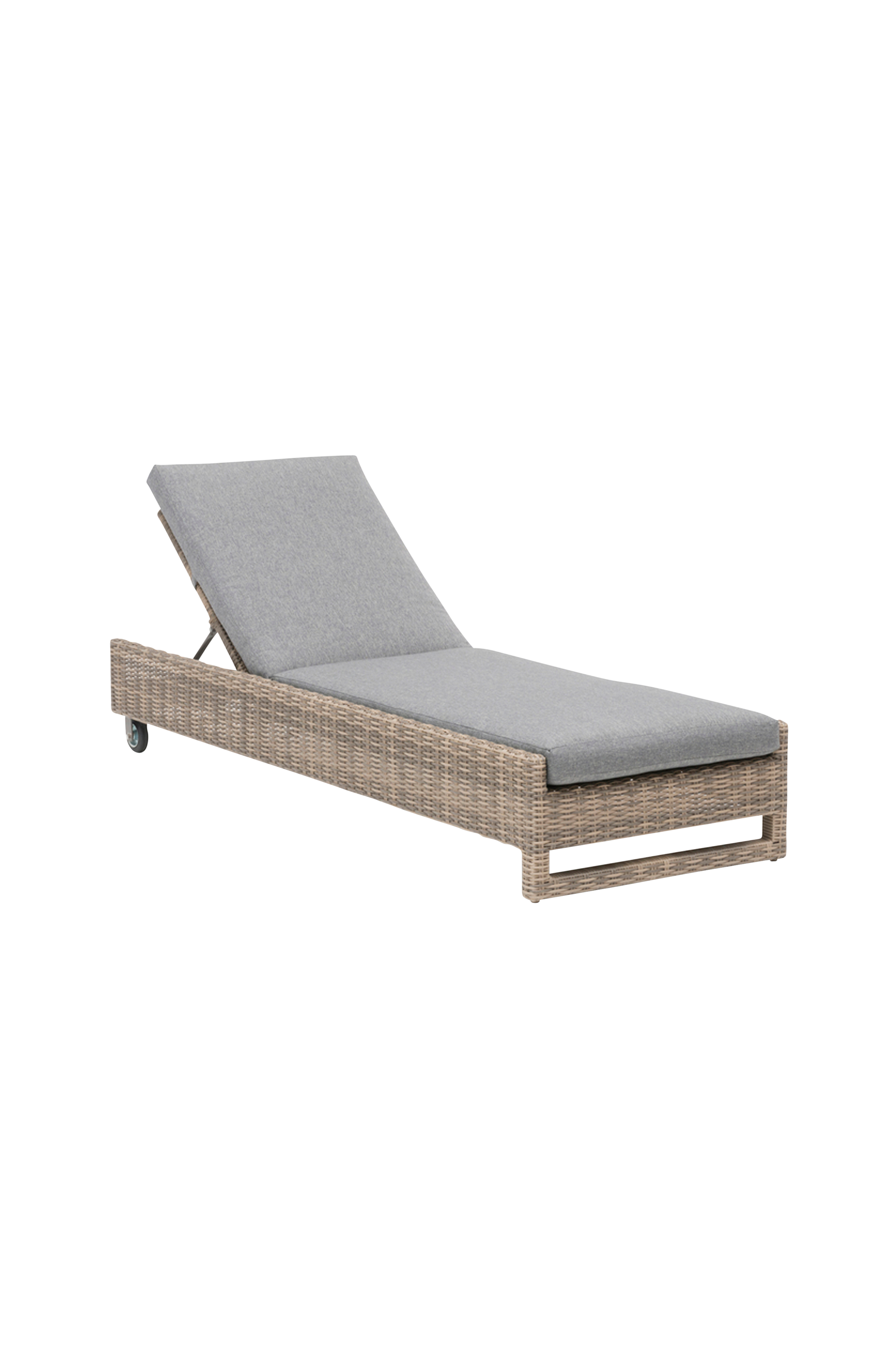 HAMPTON solseng av grå/beige kunstrotting. Justerbar rygg. Inkludert grå pute.