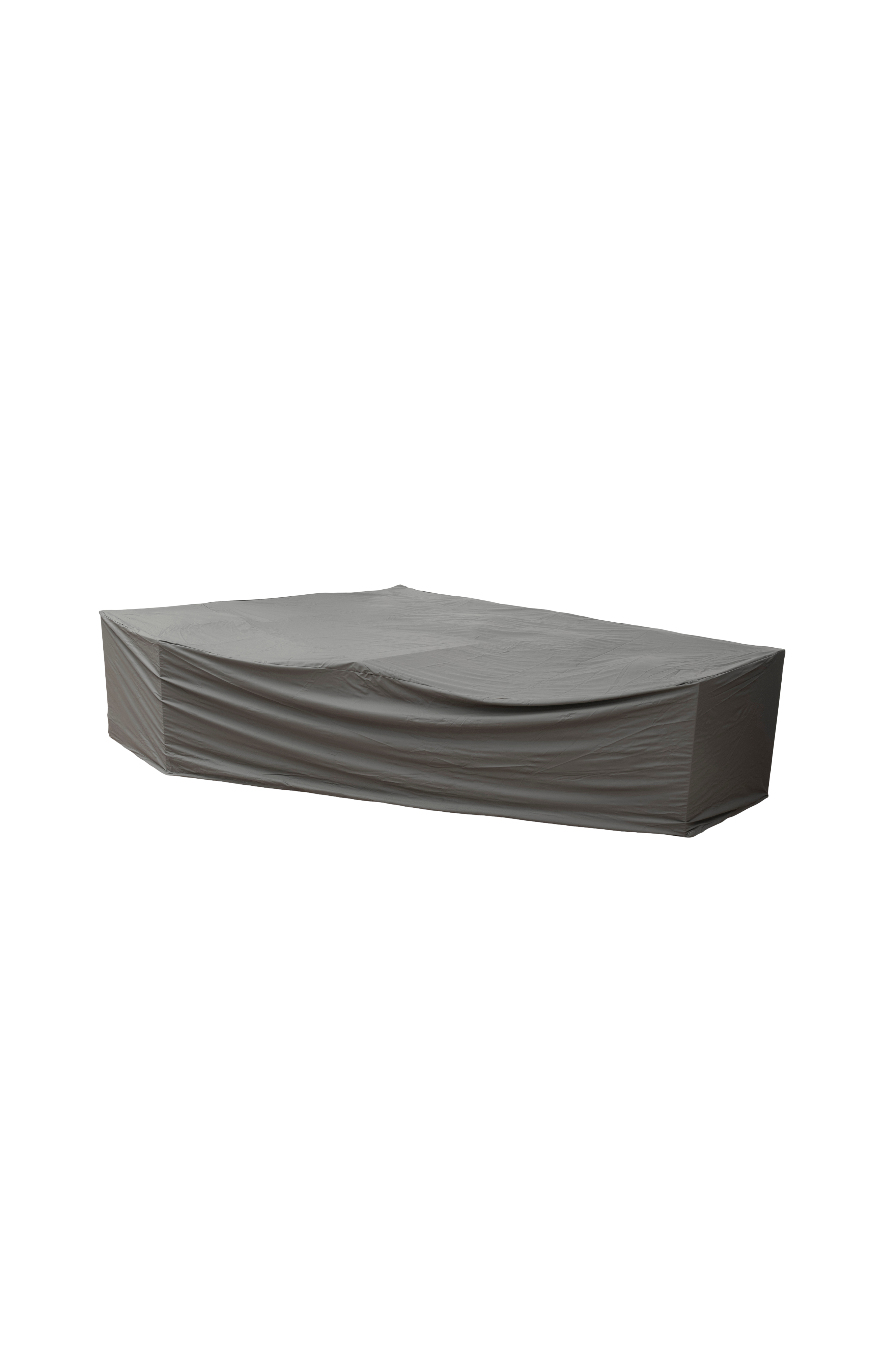 Mörkgrå möbelskydd av PES-polyester/PU-polyuretan, ett material som är vattentätt, antistatiskt samt andningsbart. Fästes med dragsko och kardborreband. Kan passa till en hörnsoffa med 3+3 sittplatser typ Läckö loungegrupp. Se till att gruppen får någon form av ventilation när möbelskyddet används. Mått: 200/70x265/70x68 cm.