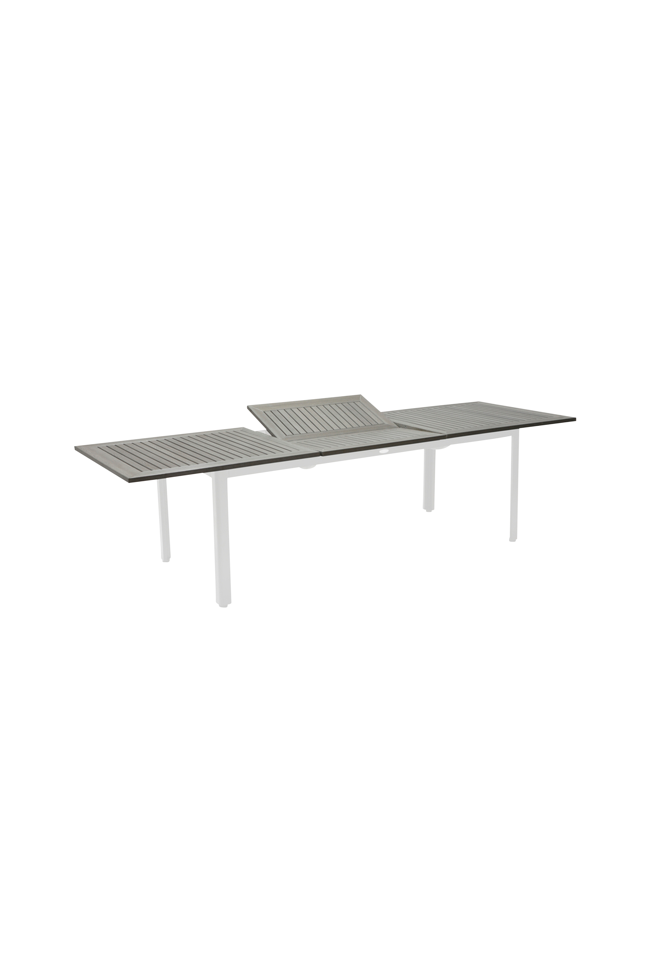 NYDALA Bord 90 X 200 / 280 cm Hvit Aluminium/Grå Gaumo-R. Bord i hvit aluminium og grå Gaumo-R. Butterfly ileggsplate.