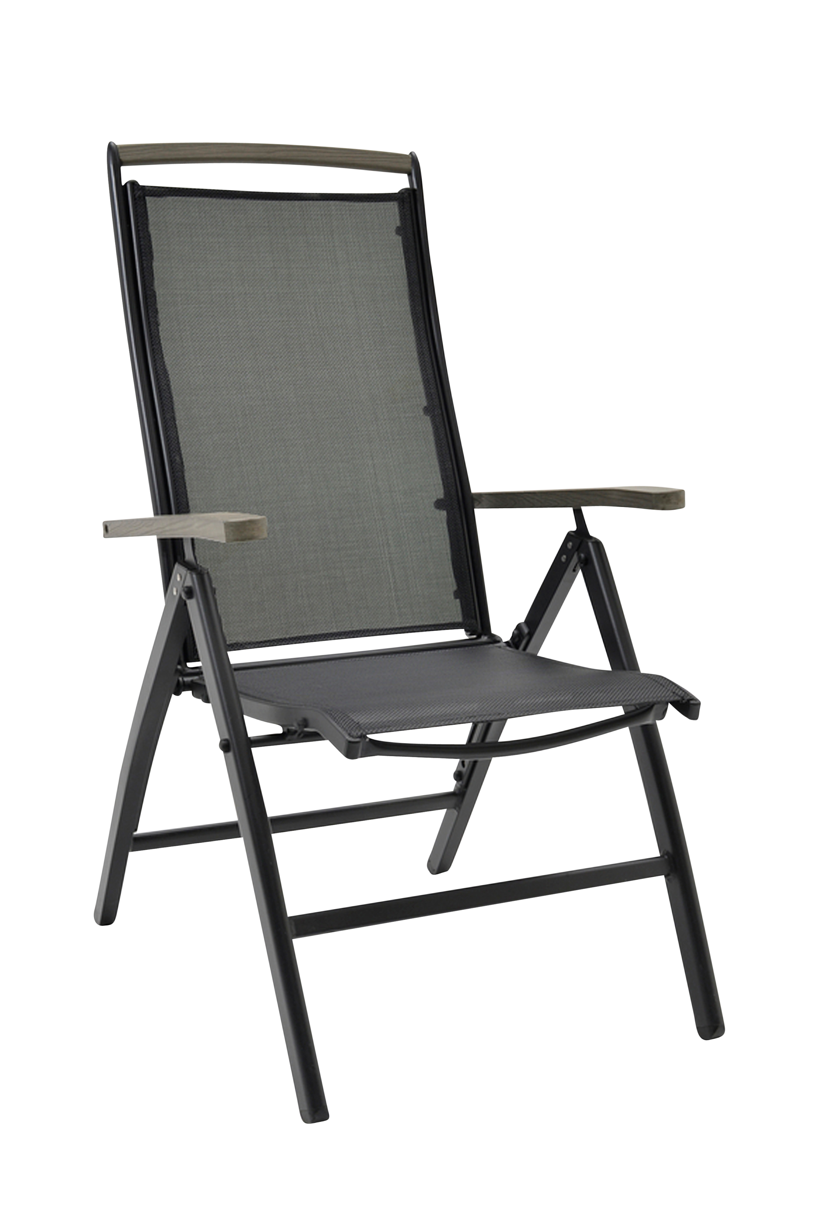 Posisjonsstol i svart av aluminium, tekstilene og grå Gaumo-R. Sammenleggbar og justerbar (7 ulike nivåer).