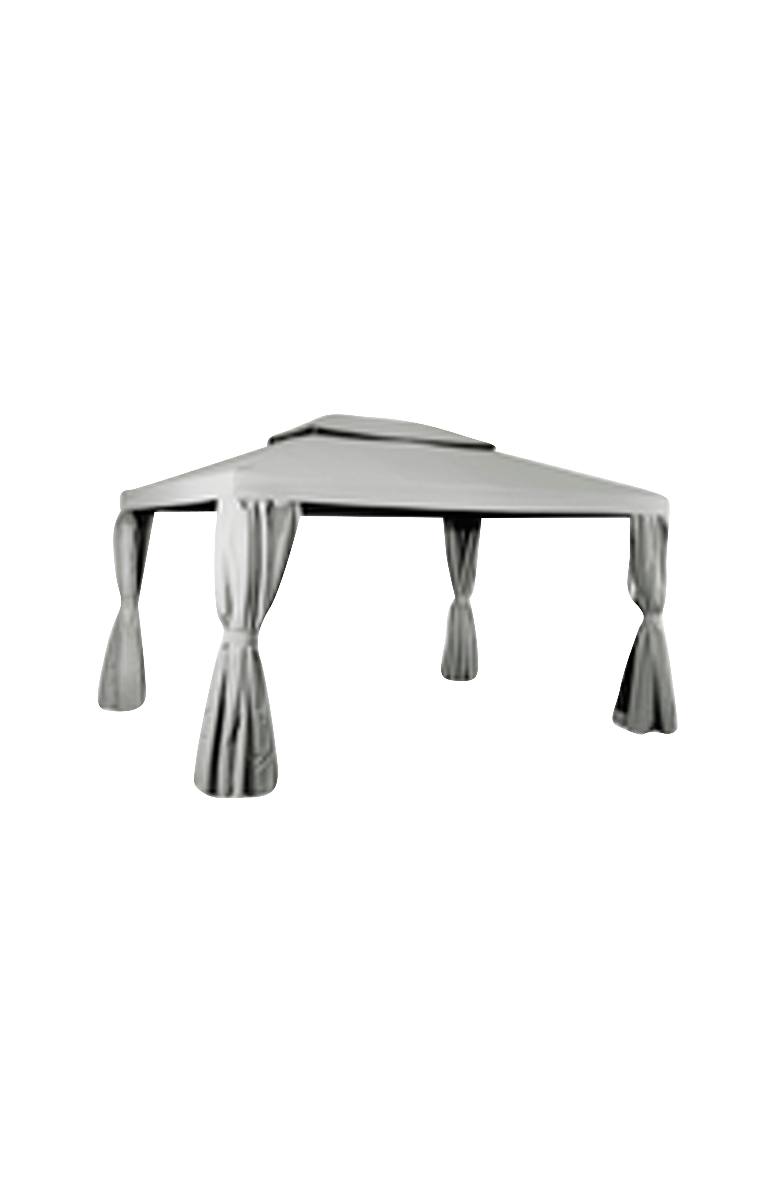 Paviljong Flora med mørk brun metallstamme samt tak og vegger i grå polyester, stoffets vekt er 300 gram. Paviljongen selges som solskjerming, og leveres komplett med tak, sidevegger og myggnetting. Inkludert metallstag for å forankre paviljongen i bakken. Myggnetting og sidevegger kan brukes separat. Både myggnetting og/eller sidevegger kan festes på en eller flere sider av paviljongen mens de andre sidene kan være helt åpne. En sentrert krok i midten av undertaket passer fint å henge belysning eller annen dekor i. Den øverste takseksjonen gir ventilasjon i paviljongen slik at vinden passerer lettere.
