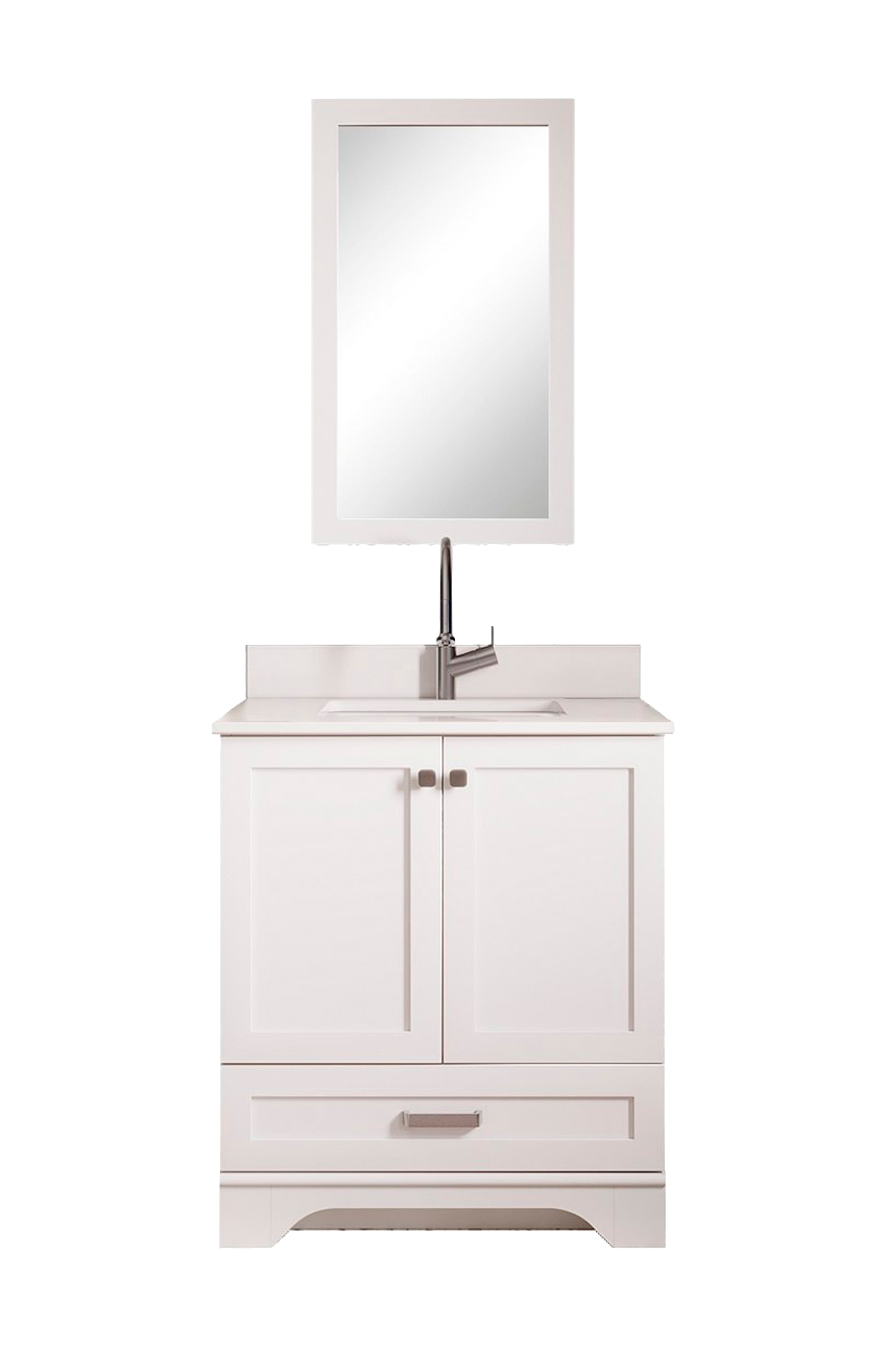 100% lakkert MDF (massivt tre) (tykkelse: 18 mm) benkeplate: 100% hvit kvarts & montert håndvask av porselen