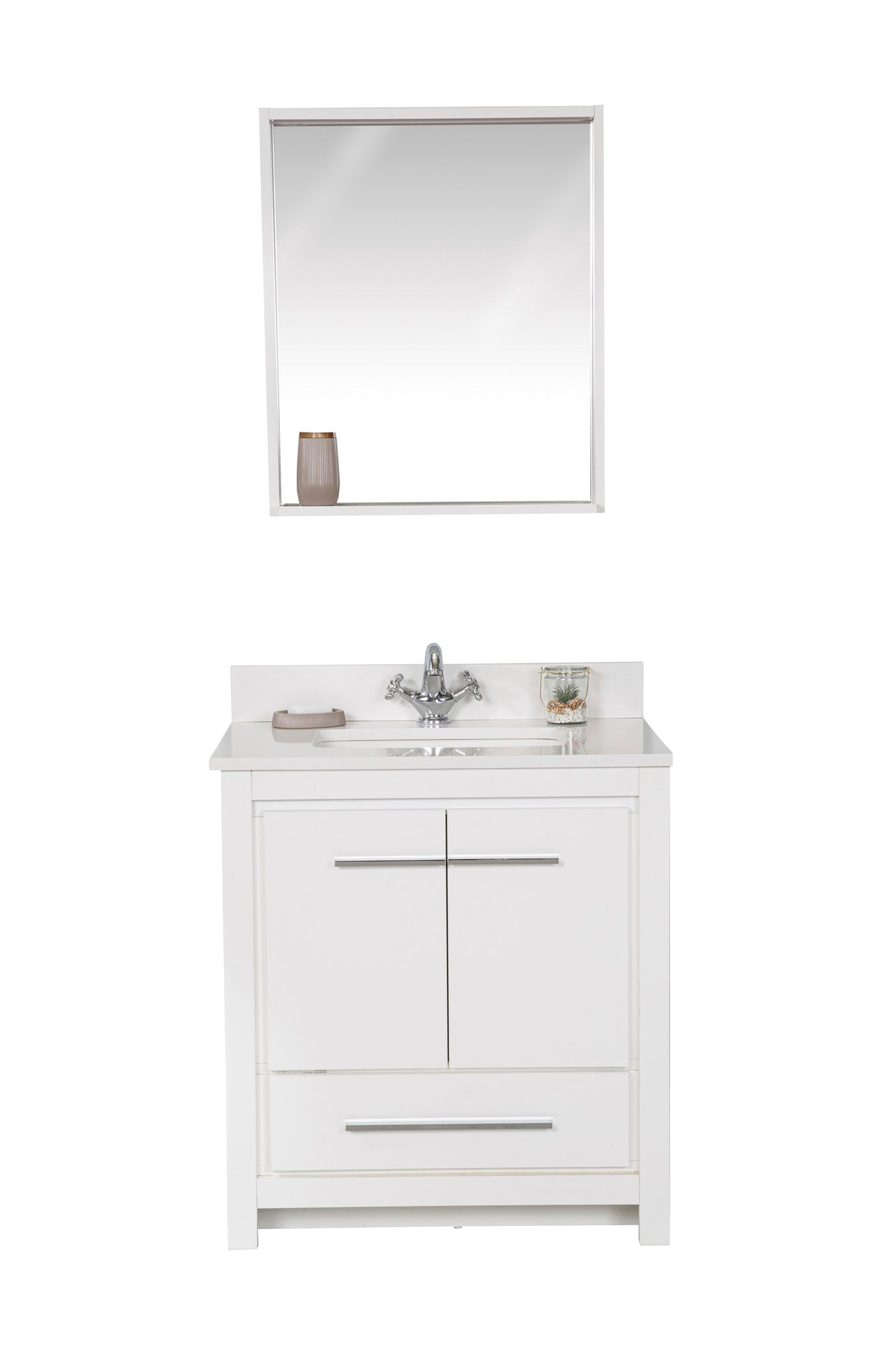 100% lakkert MDF (massivt tre) (tykkelse: 18 mm) benkeplate: 100% hvit kvarts & montert håndvask av porselen
