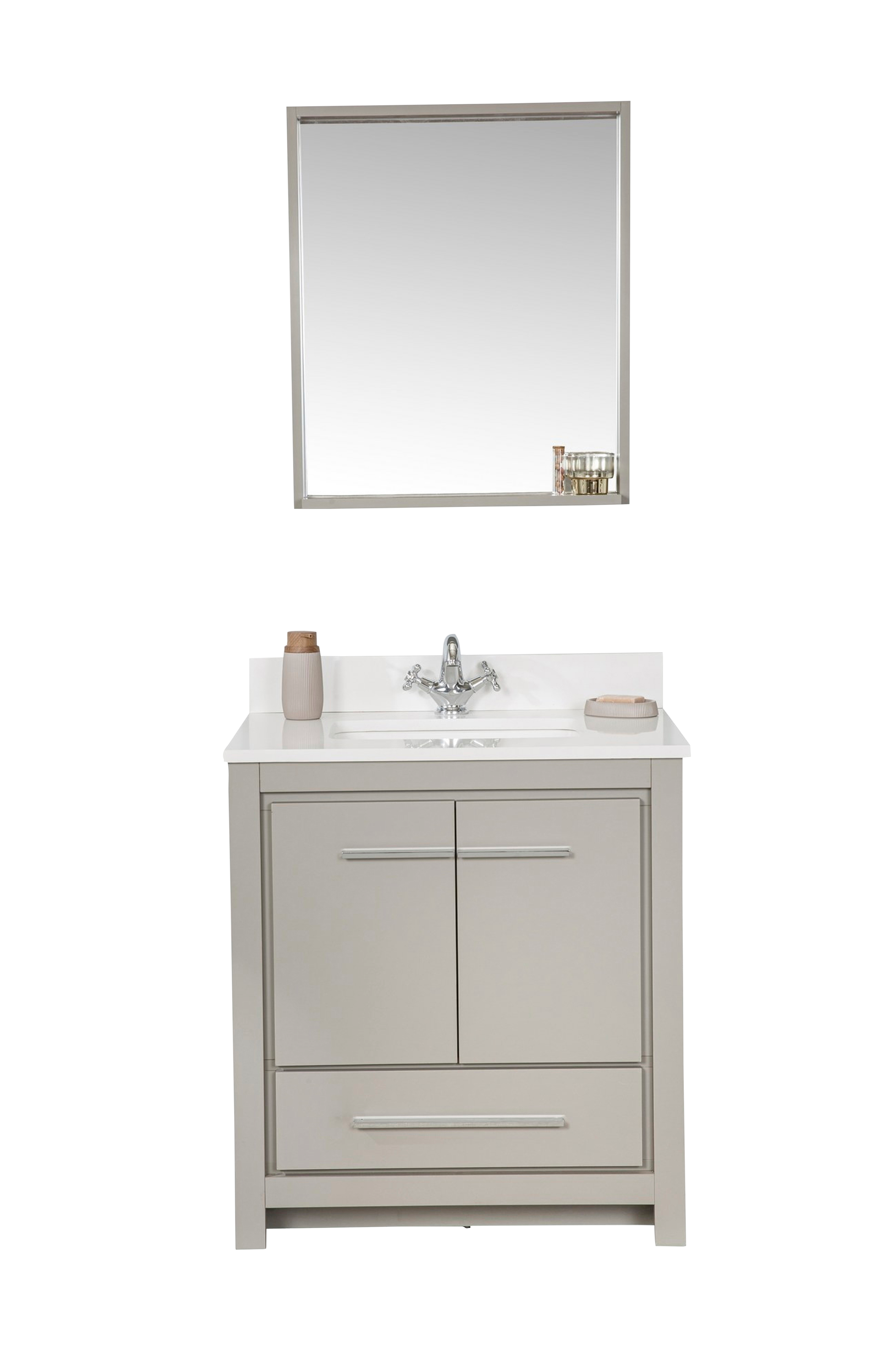 100% lakkert MDF (massivt tre) (tykkelse: 18 mm) benkeplate: 100% hvit kvarts & montert håndvask av porselen