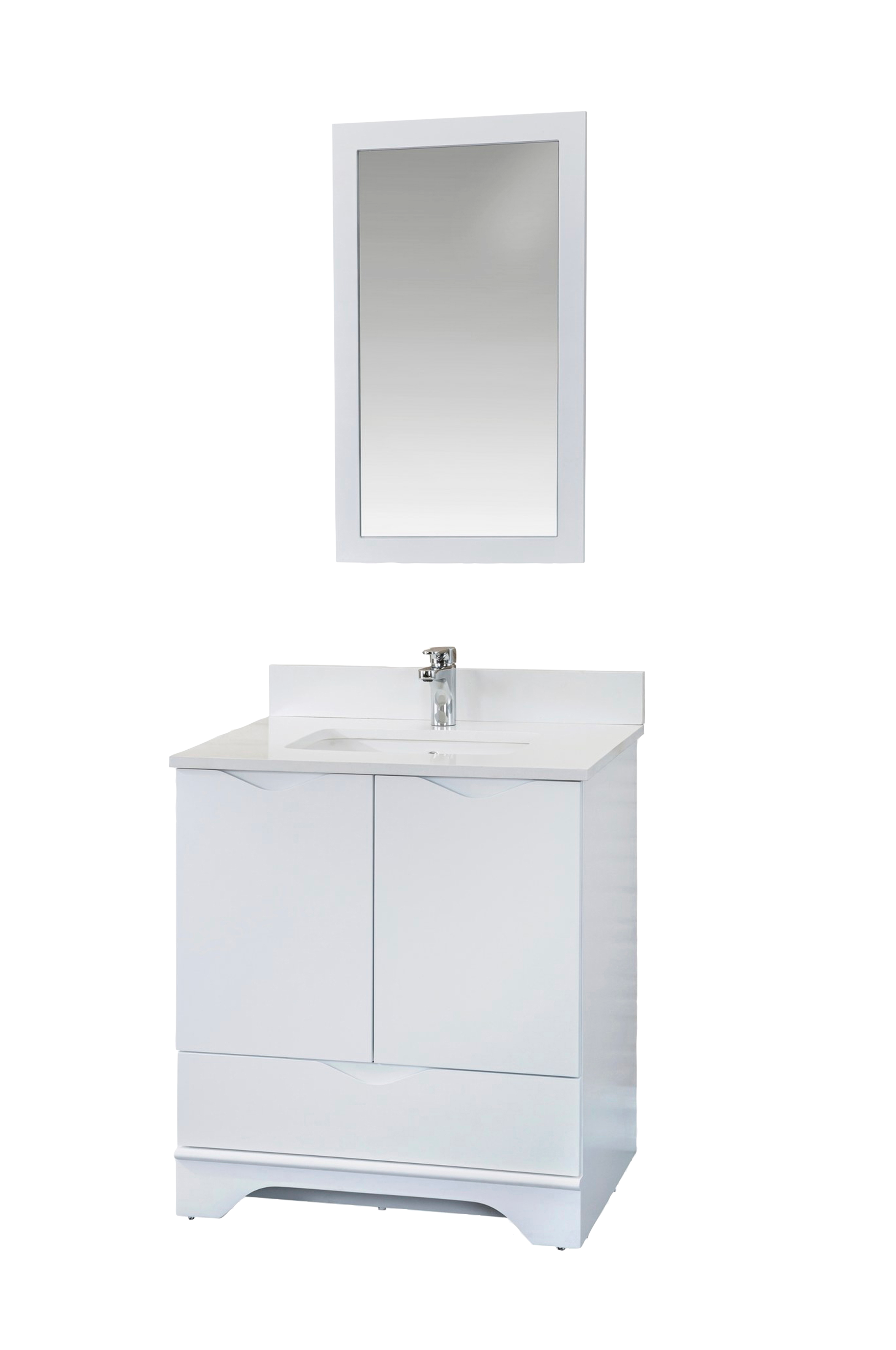100% lakkert MDF (massivt tre) (tykkelse: 18 mm) benkeplate: 100% hvit kvarts & montert håndvask av porselen