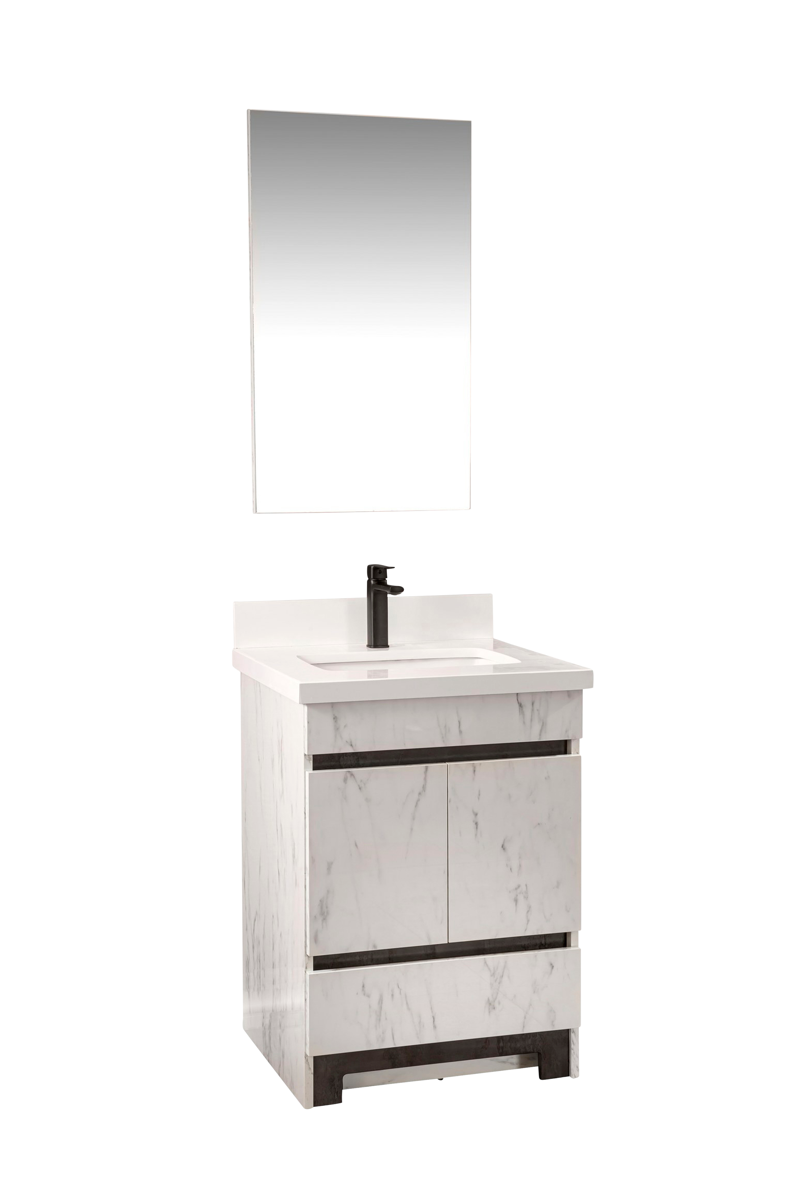 100% MDF (massivt tre) med melaminbelegg (tykkelse: 18 mm) benkeplate: 100% hvit kvarts & montert håndvask av porselen