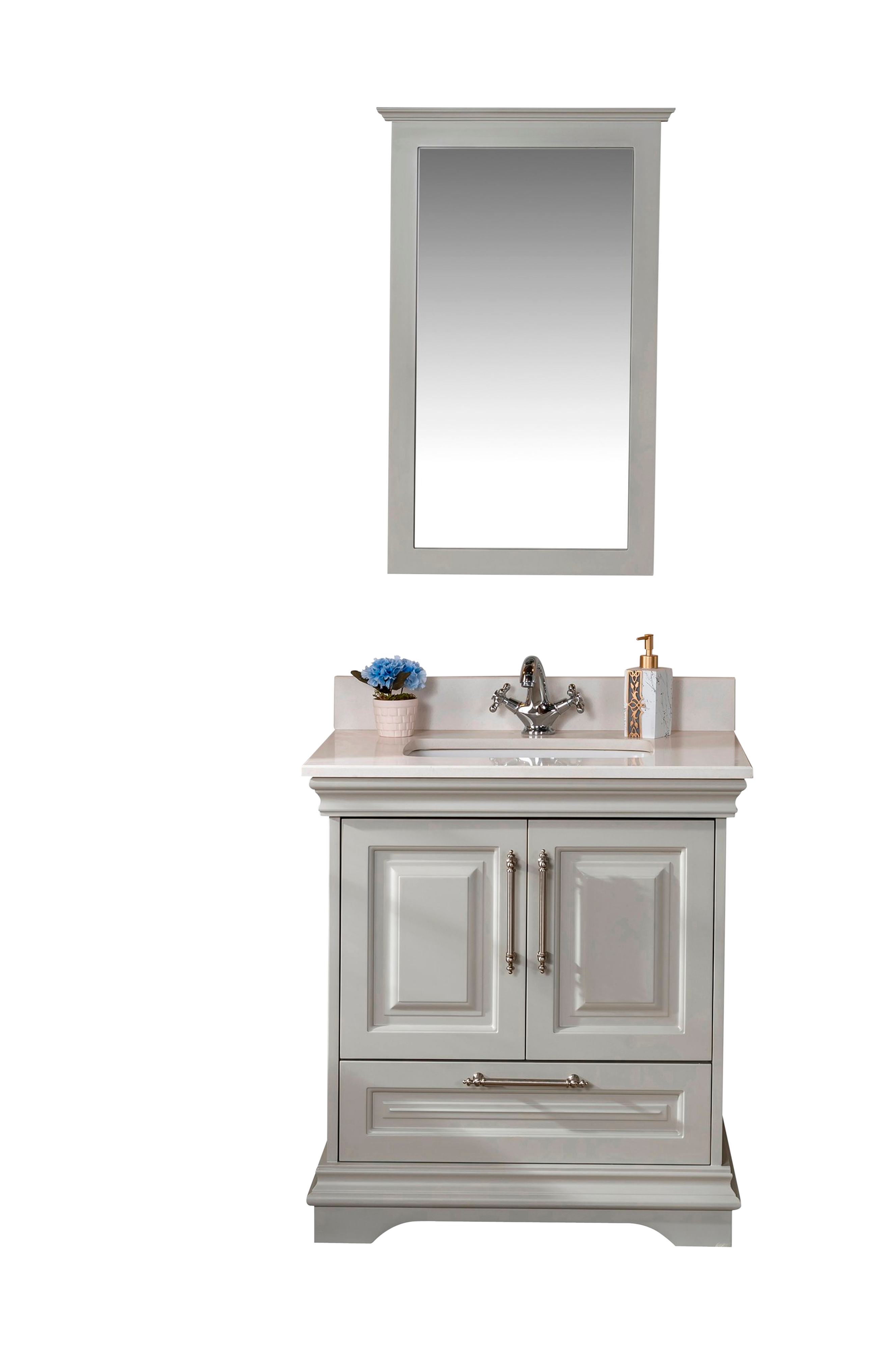 100% lakkert MDF (massivt tre) (tykkelse: 18 mm) benkeplate: 100% hvit kvarts & montert håndvask av porselen
