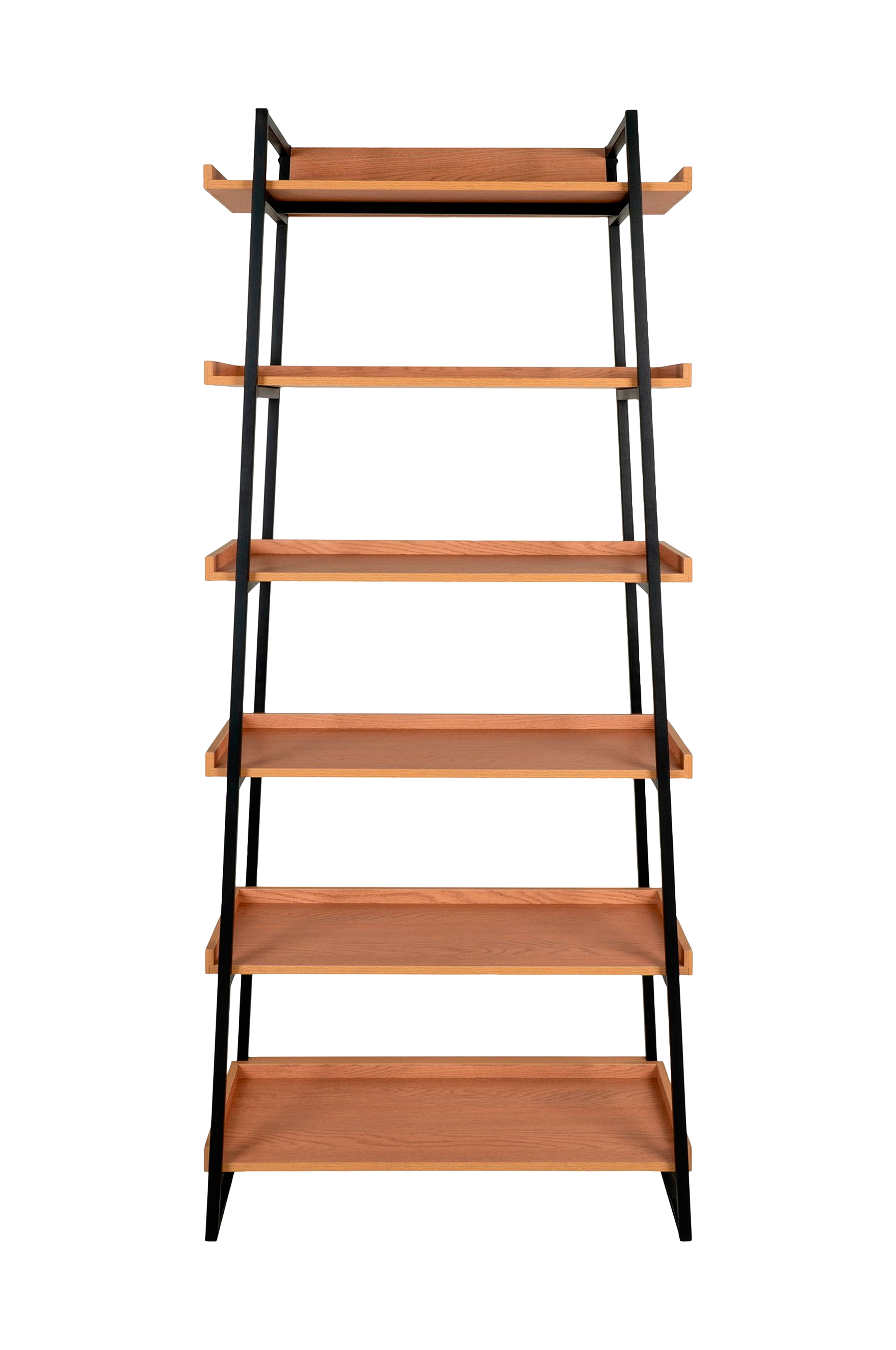 Bokhylle, askfinér, svart stålramme, 6 hyller, 80x35x185 cm
