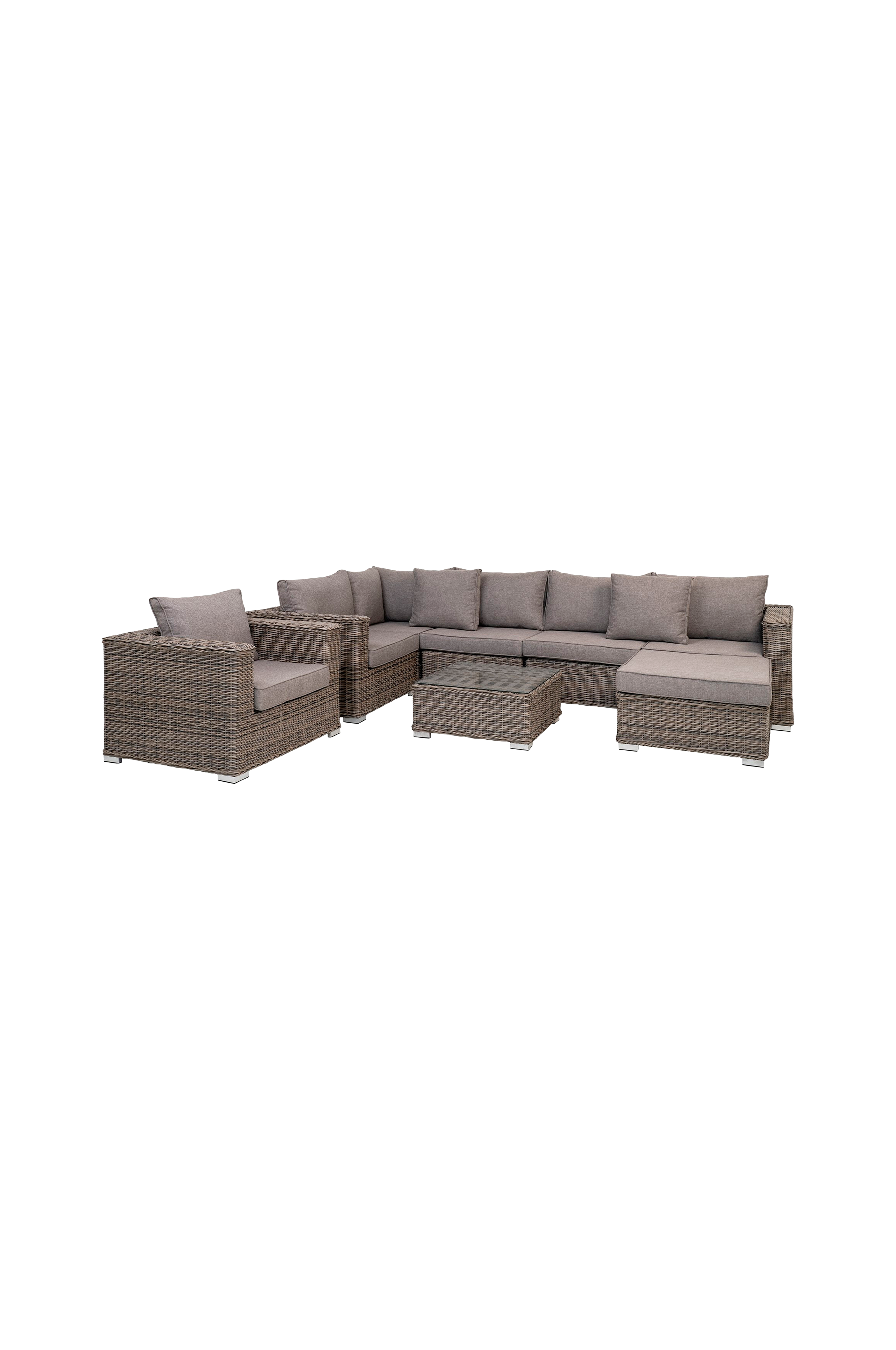 Loungesett, kubugrått, polyrattan, inkl. puter