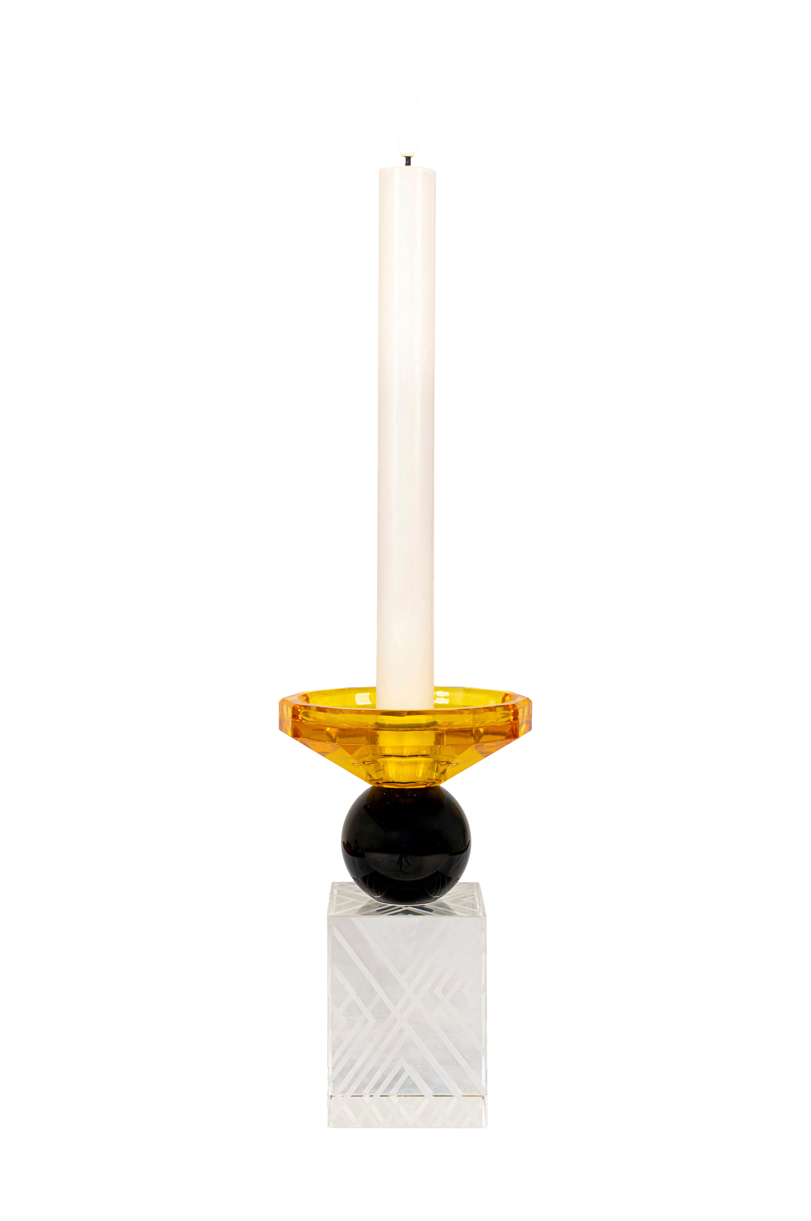 Lysestake av glass. Mål: Diameter 9,5 x H 15 cm.